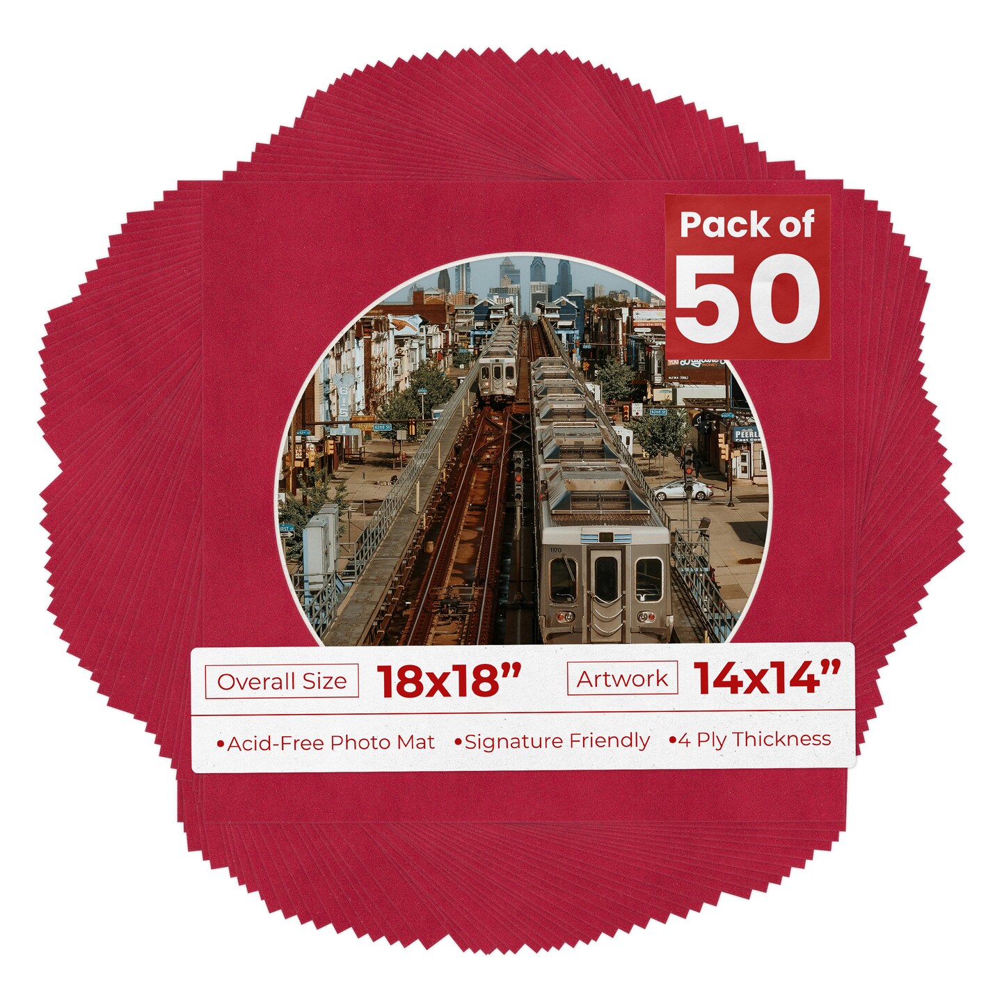 Red Suede Mat Board for 18x18 Frames - Circle Opening for 14x14 Photos