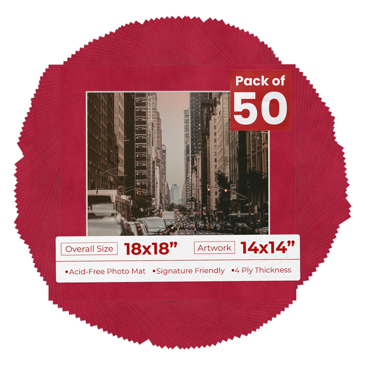 Red Suede Mat Board for 18x18 Frames - Fits 14x14 Photos
