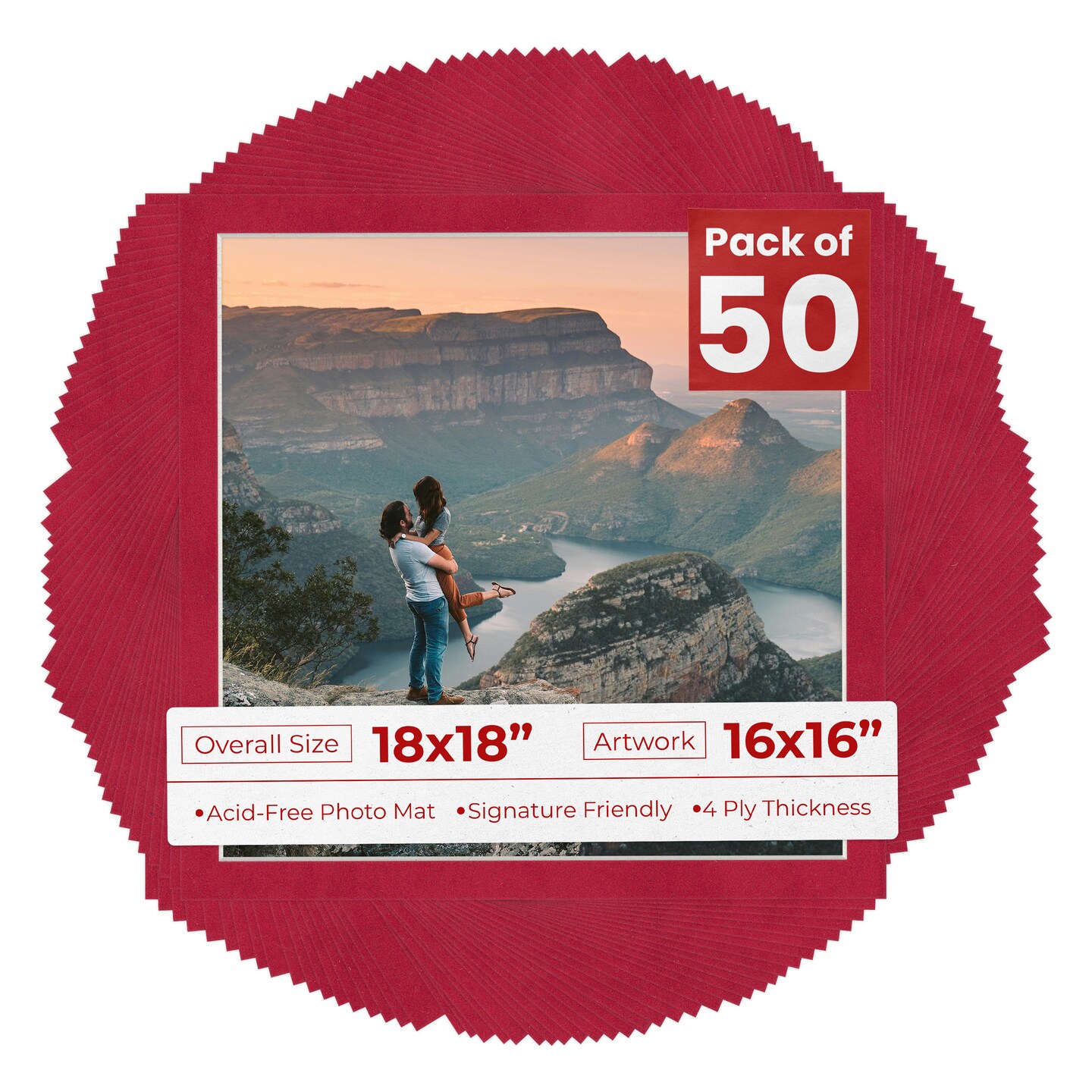 Red Suede Mat Board for 18x18 Frames - Fits 16x16 Photos