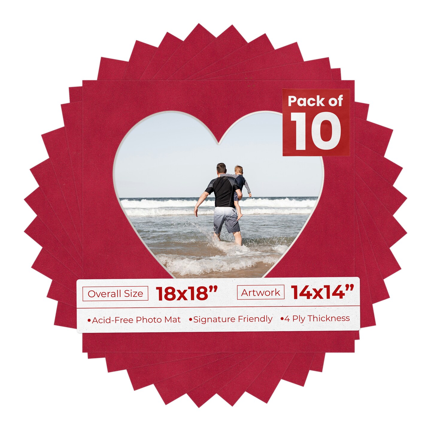Red Suede Mat Board for 18x18 Frames - Heart Opening for 14x14 Photos