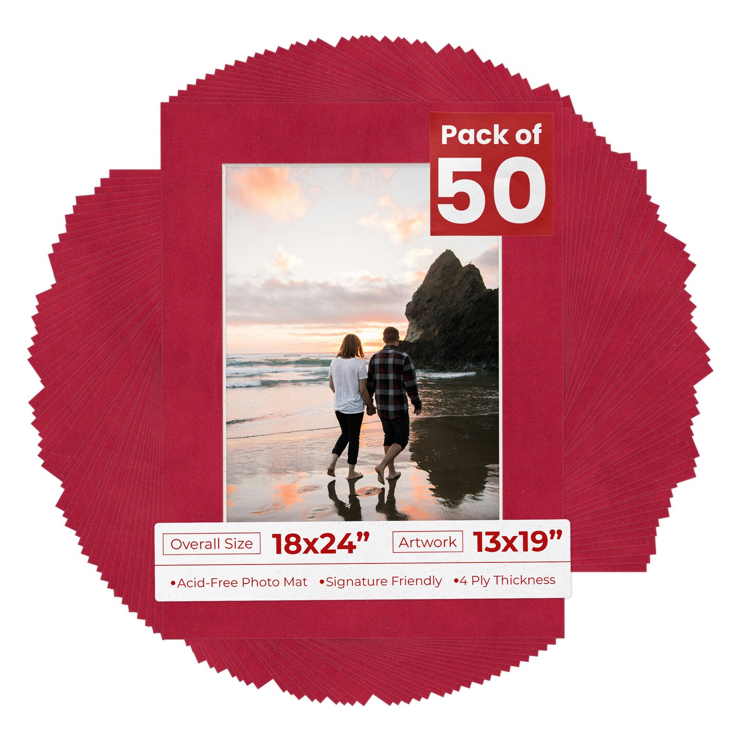 Red Suede Mat Board for 18x24 Frames - Fits 13x19 Photos
