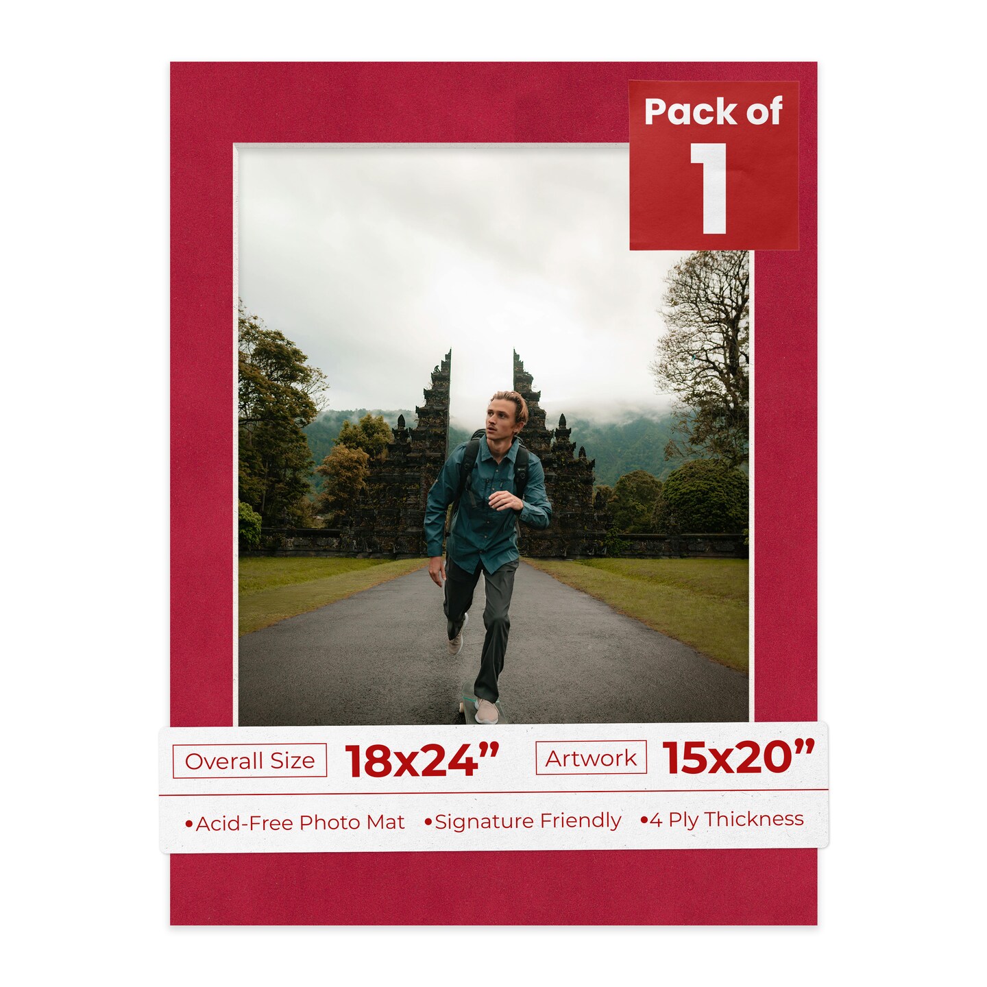 Red Suede Mat Board for 18x24 Frames - Fits 15x20 Photos