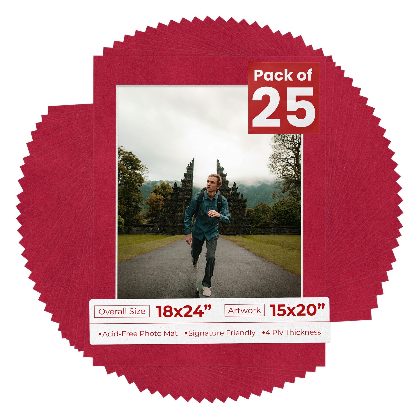 Red Suede Mat Board for 18x24 Frames - Fits 15x20 Photos
