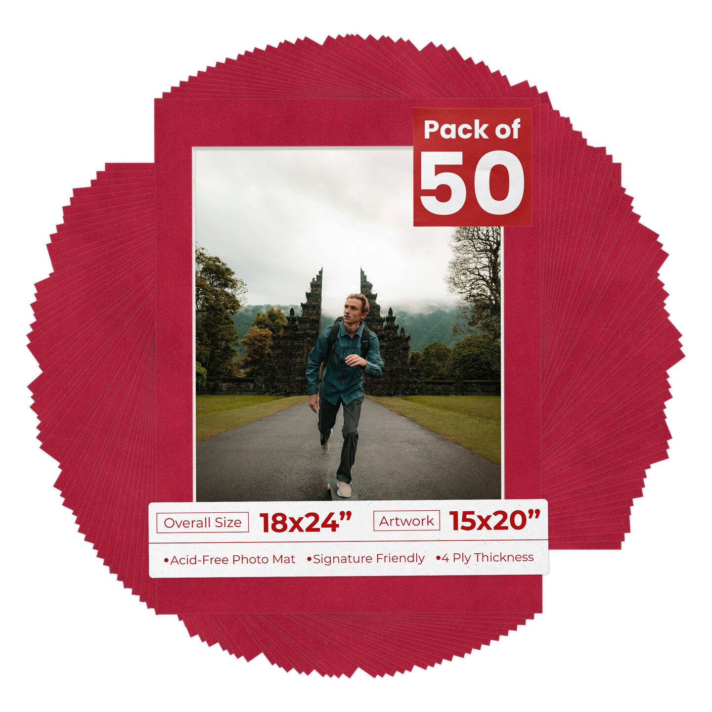 Red Suede Mat Board for 18x24 Frames - Fits 15x20 Photos