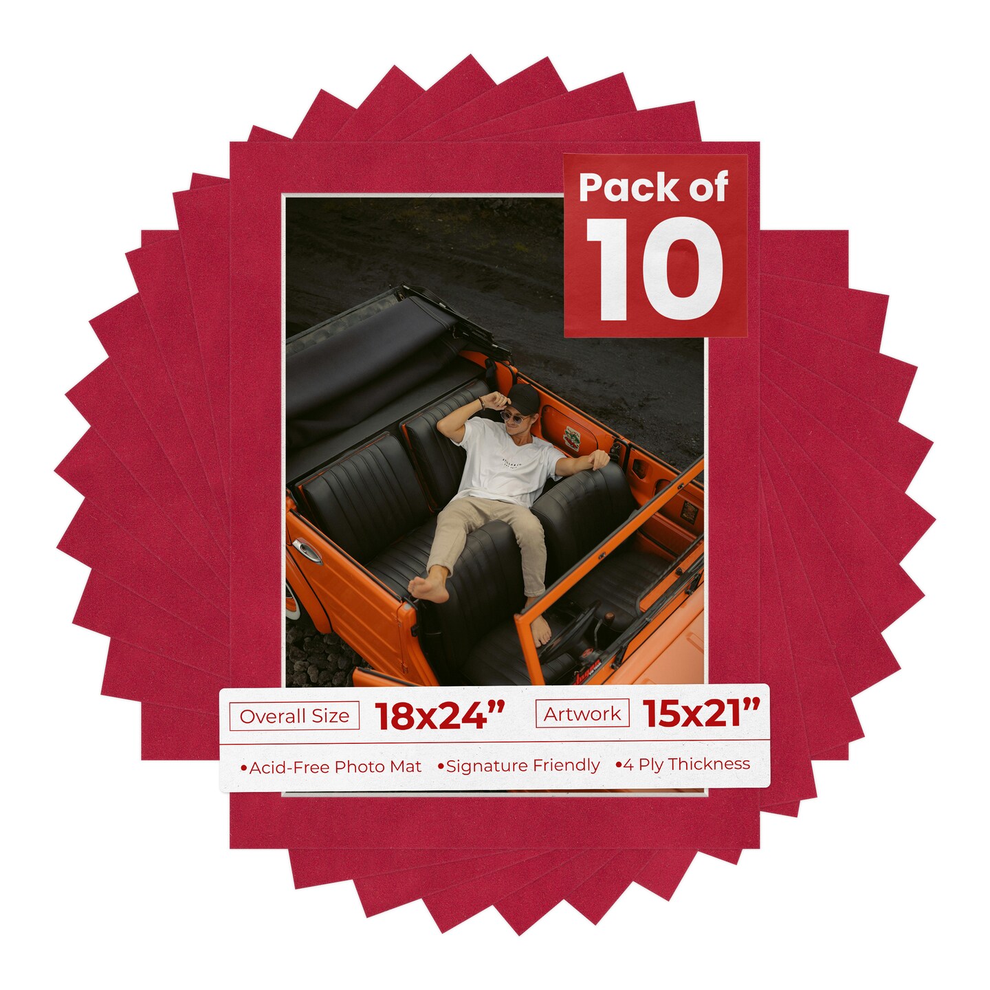 Red Suede Mat Board for 18x24 Frames - Fits 15x21 Photos