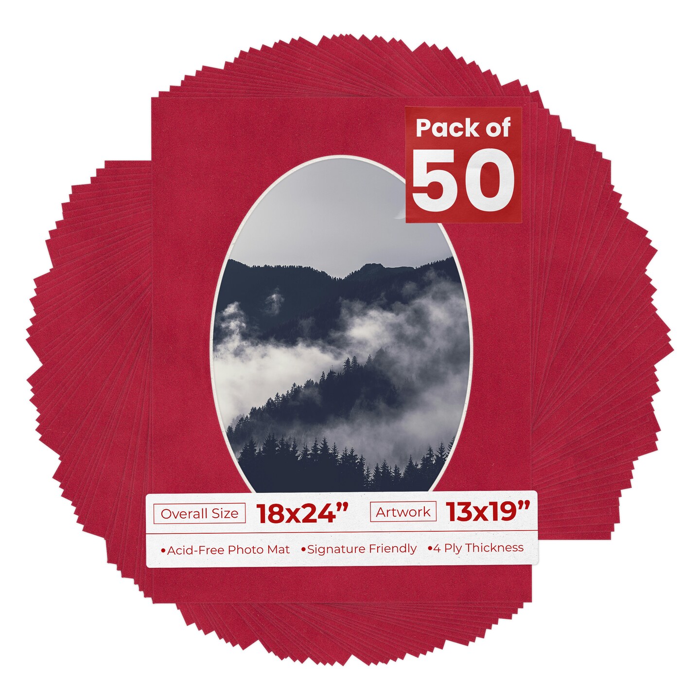 Red Suede Mat Board for 18x24 Frames - Oval Opening for 13x19 Photos