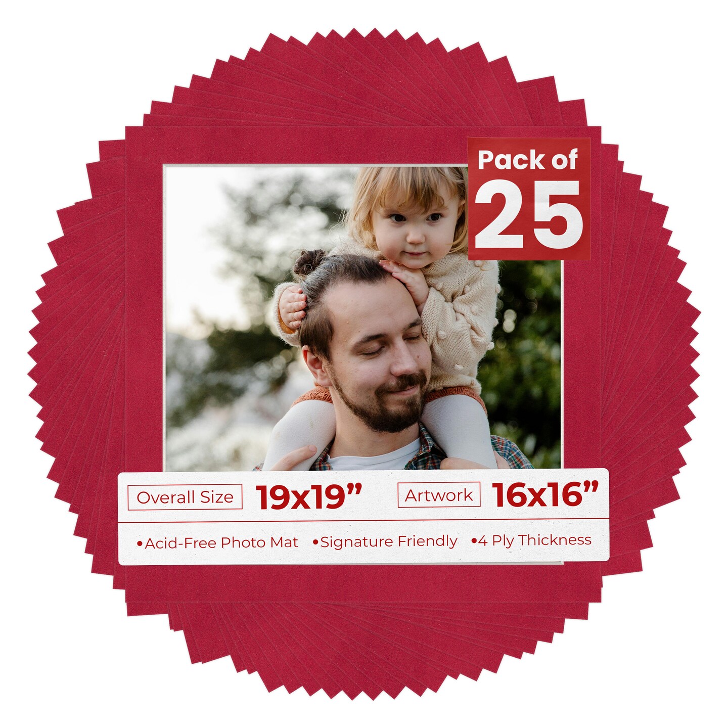Red Suede Mat Board for 19x19 Frames - Fits 16x16 Photos