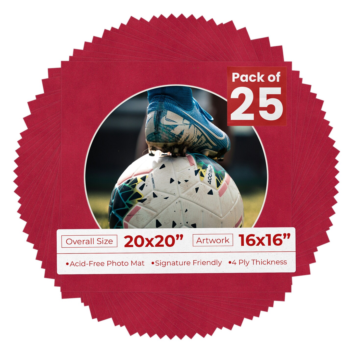 Red Suede Mat Board for 20x20 Frames - Circle Opening for 16x16 Photos