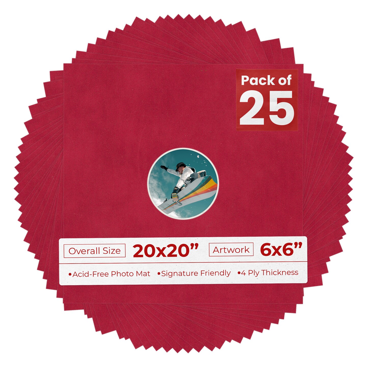 Red Suede Mat Board for 20x20 Frames - Circle Opening for 6x6 Photos