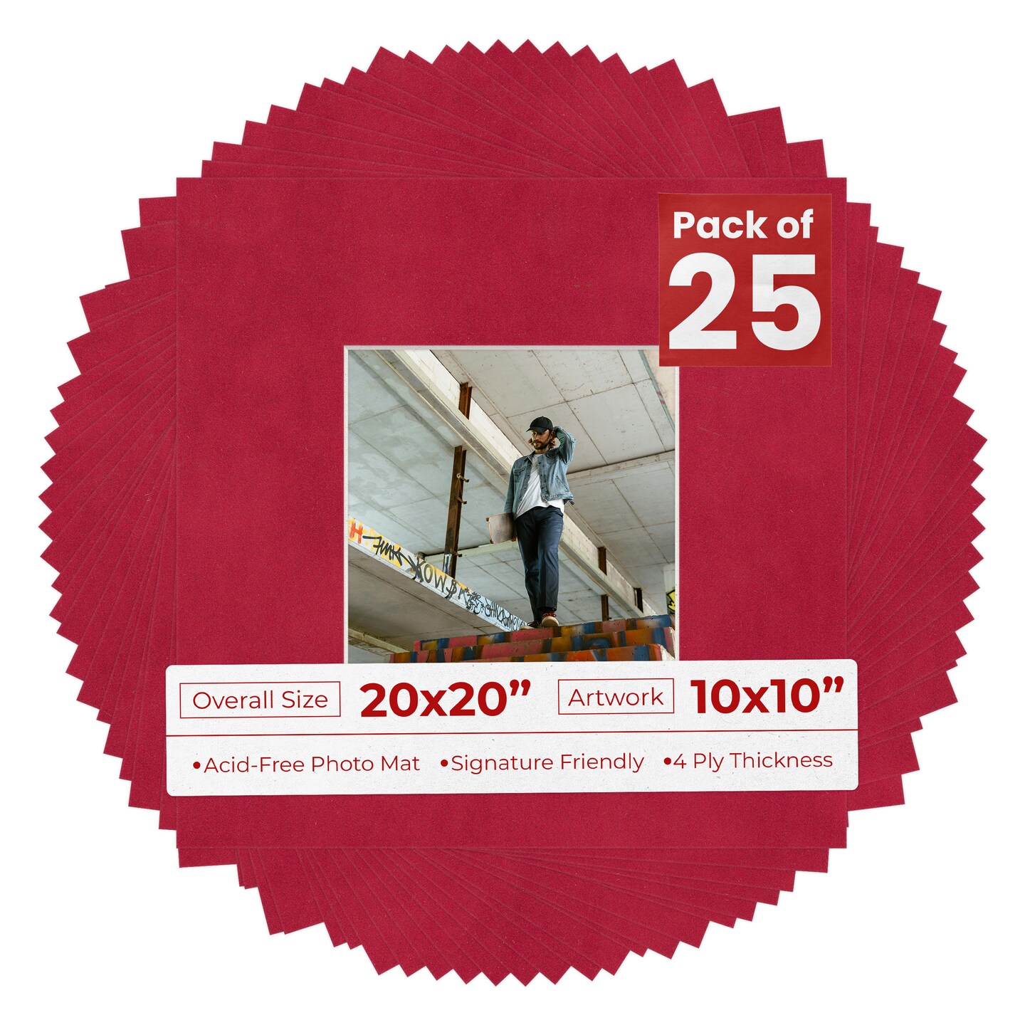 Red Suede Mat Board for 20x20 Frames - Fits 10x10 Photos