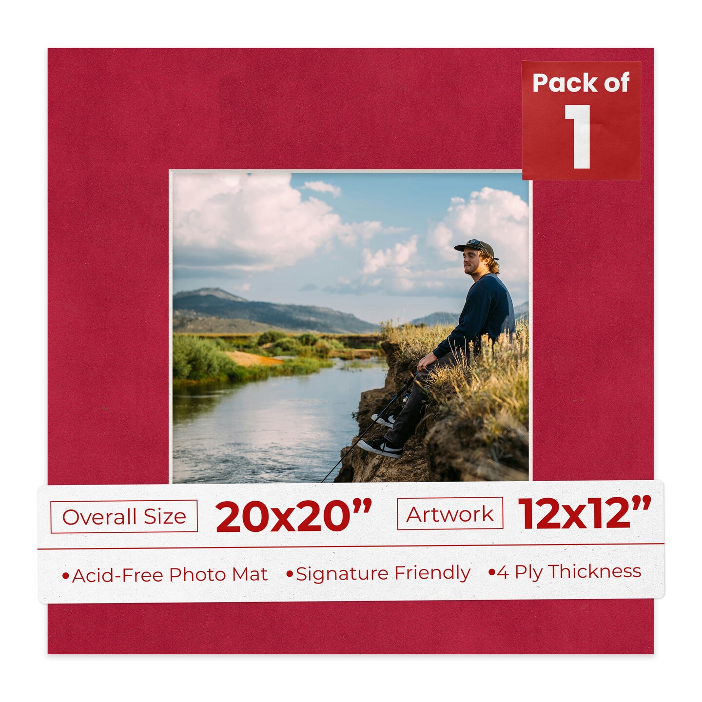 Red Suede Mat Board for 20x20 Frames - Fits 12x12 Photos
