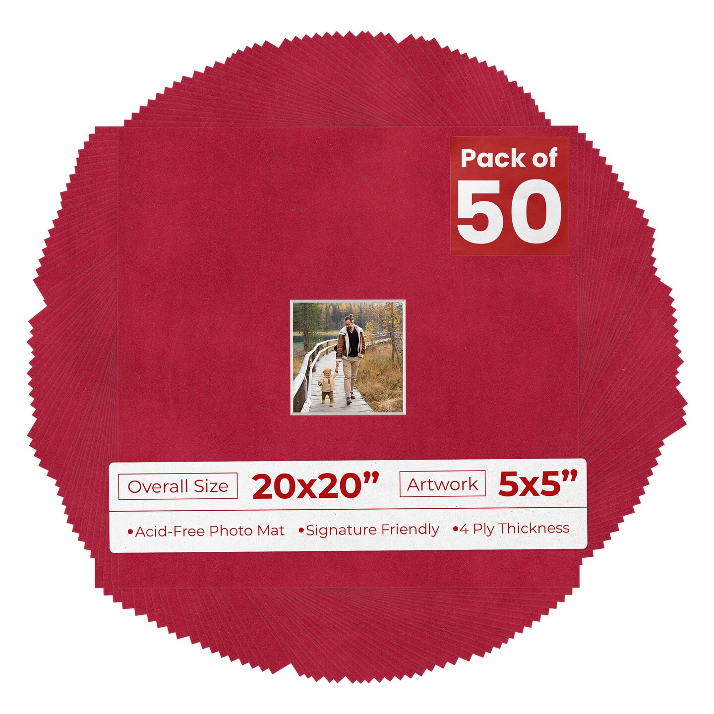 Red Suede Mat Board for 20x20 Frames - Fits 5x5 Photos