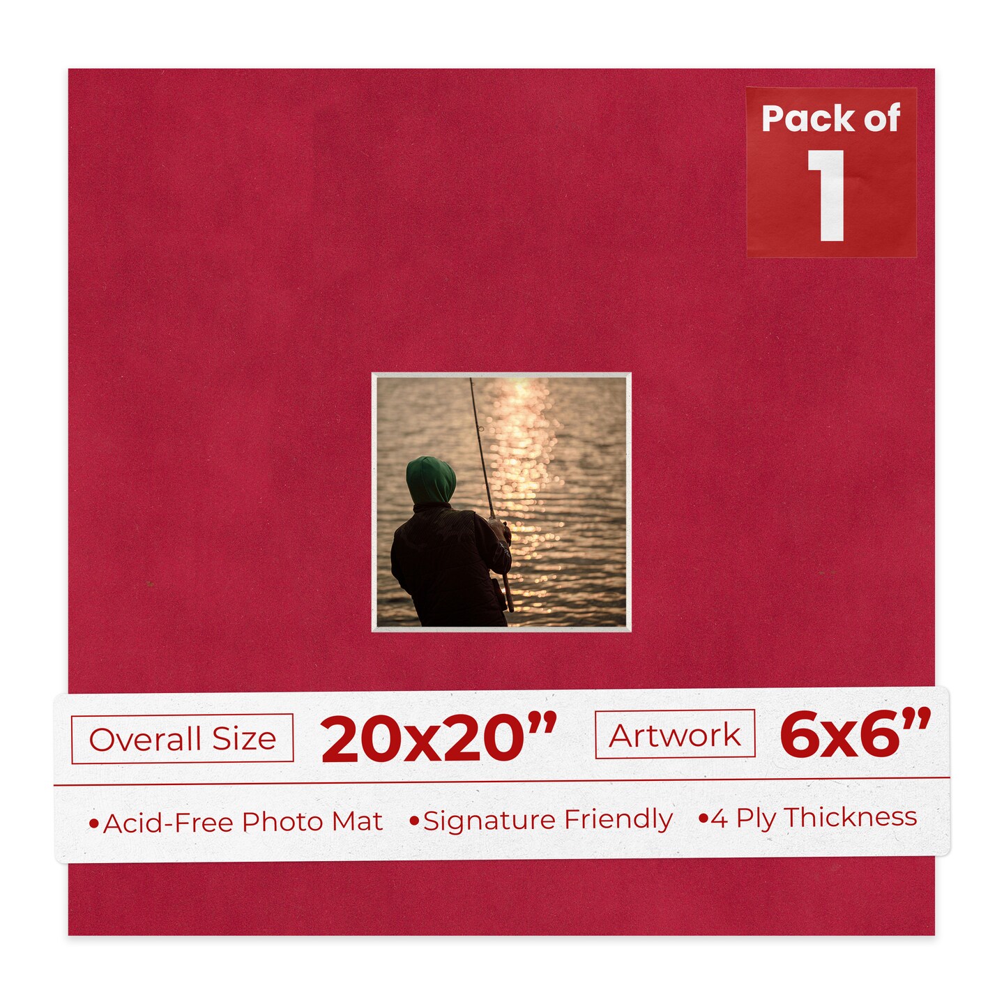 Red Suede Mat Board for 20x20 Frames - Fits 6x6 Photos