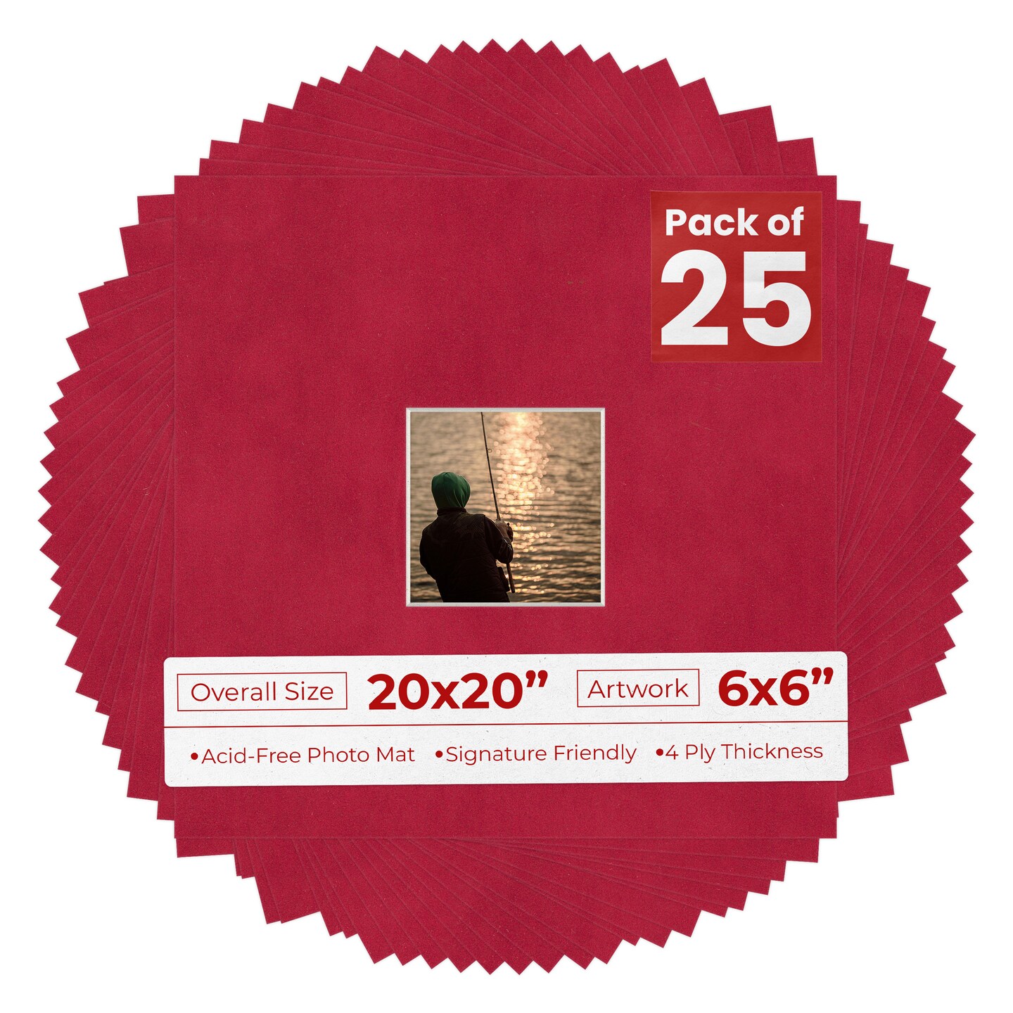 Red Suede Mat Board for 20x20 Frames - Fits 6x6 Photos