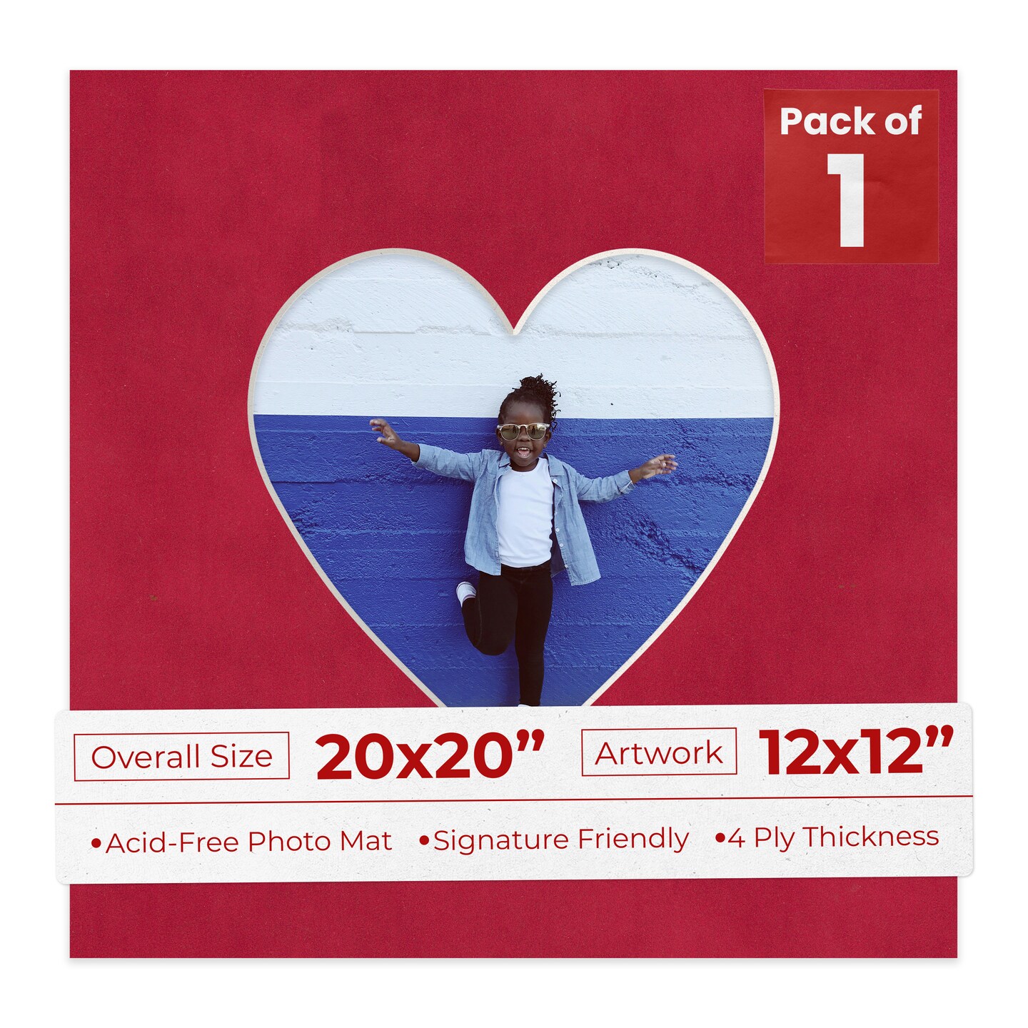 Red Suede Mat Board for 20x20 Frames - Heart Opening for 12x12 Photos