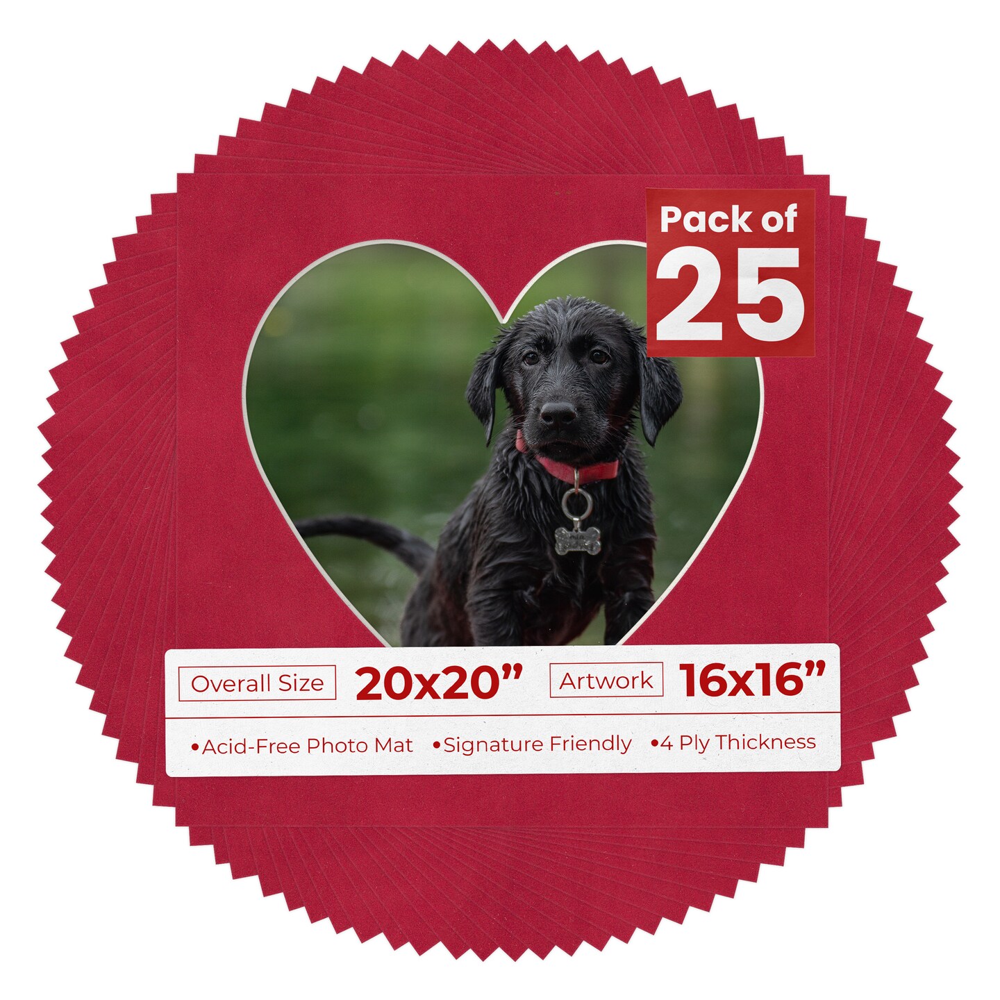 Red Suede Mat Board for 20x20 Frames - Heart Opening for 16x16 Photos