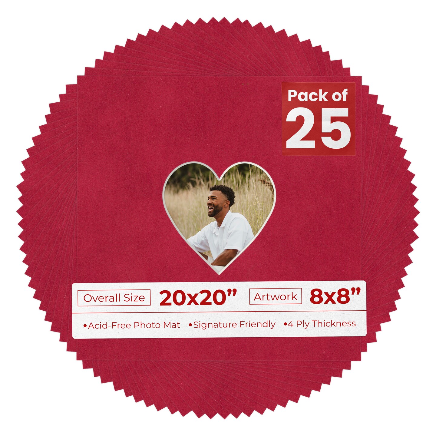 Red Suede Mat Board for 20x20 Frames - Heart Opening for 8x8 Photos