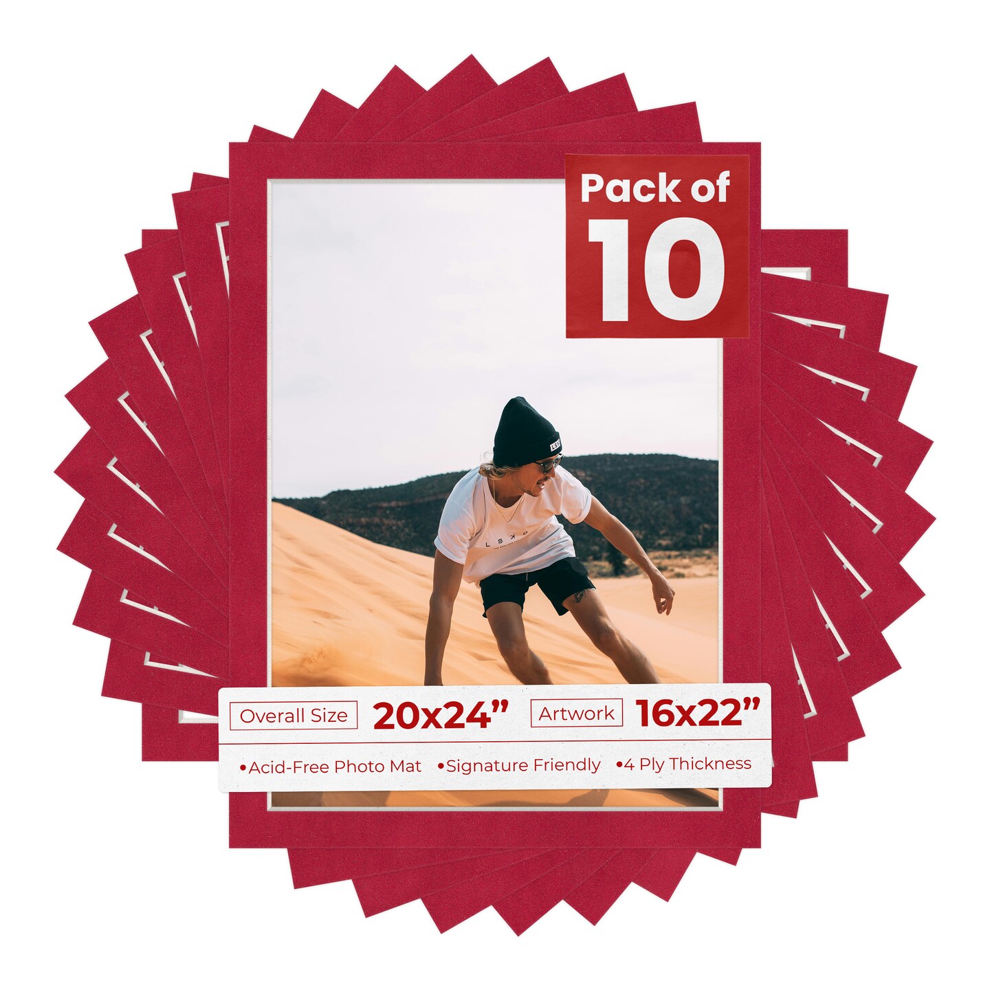 Red Suede Mat Board for 20x24 Frames - Fits 16x22 Photos