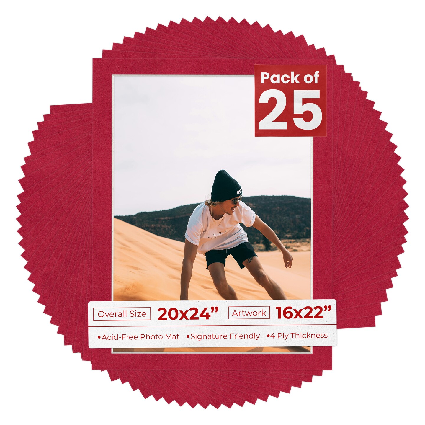 Red Suede Mat Board for 20x24 Frames - Fits 16x22 Photos