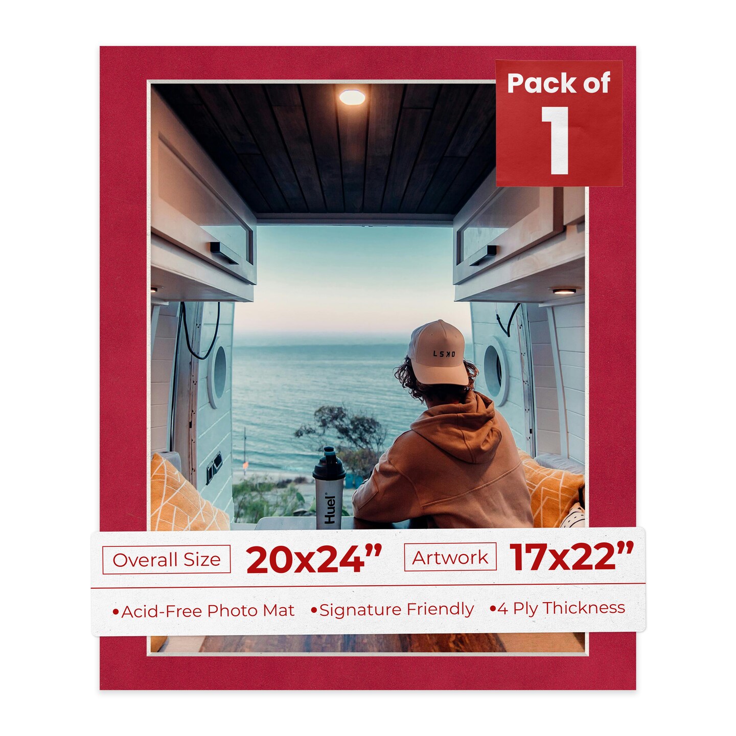 Red Suede Mat Board for 20x24 Frames - Fits 17x22 Photos