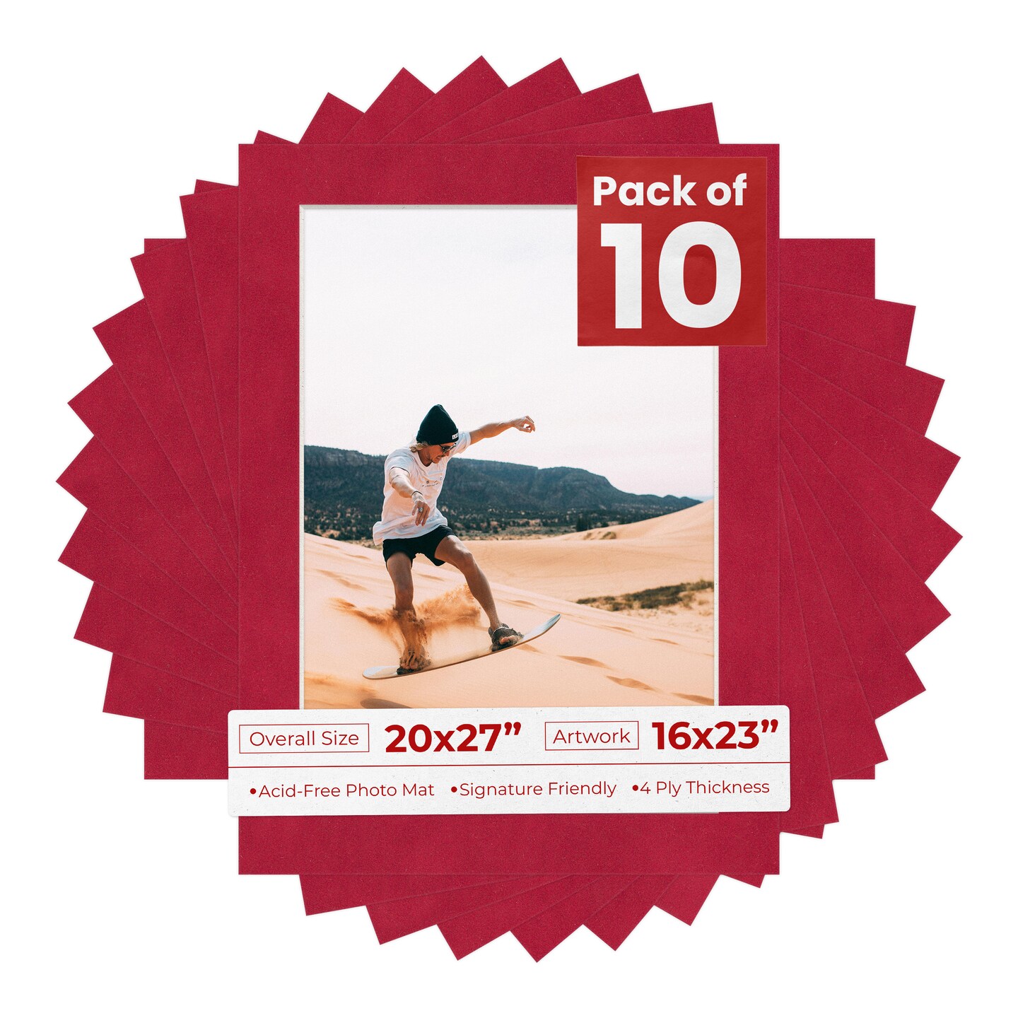 Red Suede Mat Board for 20x27 Frames - Fits 16x23 Photos