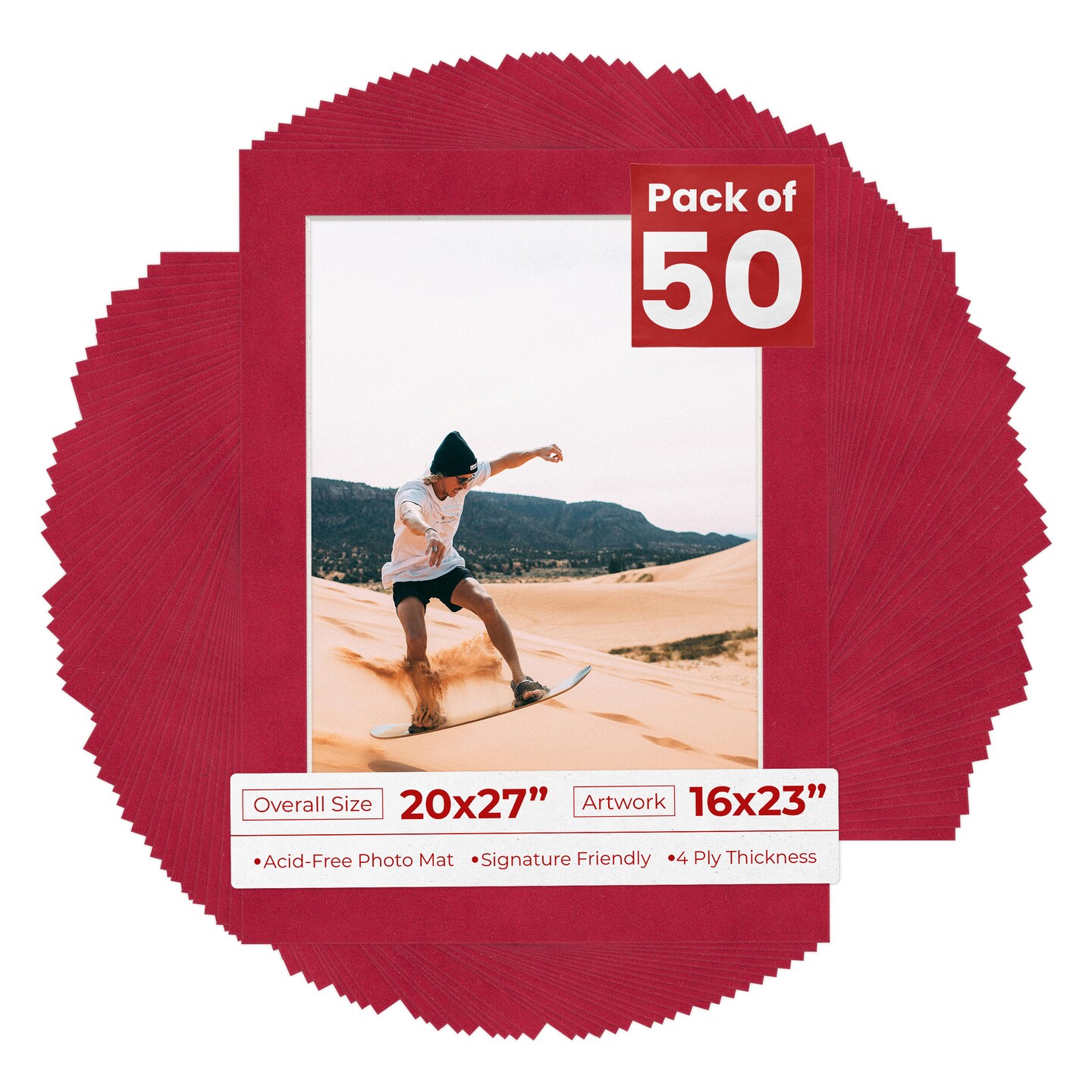 Red Suede Mat Board for 20x27 Frames - Fits 16x23 Photos