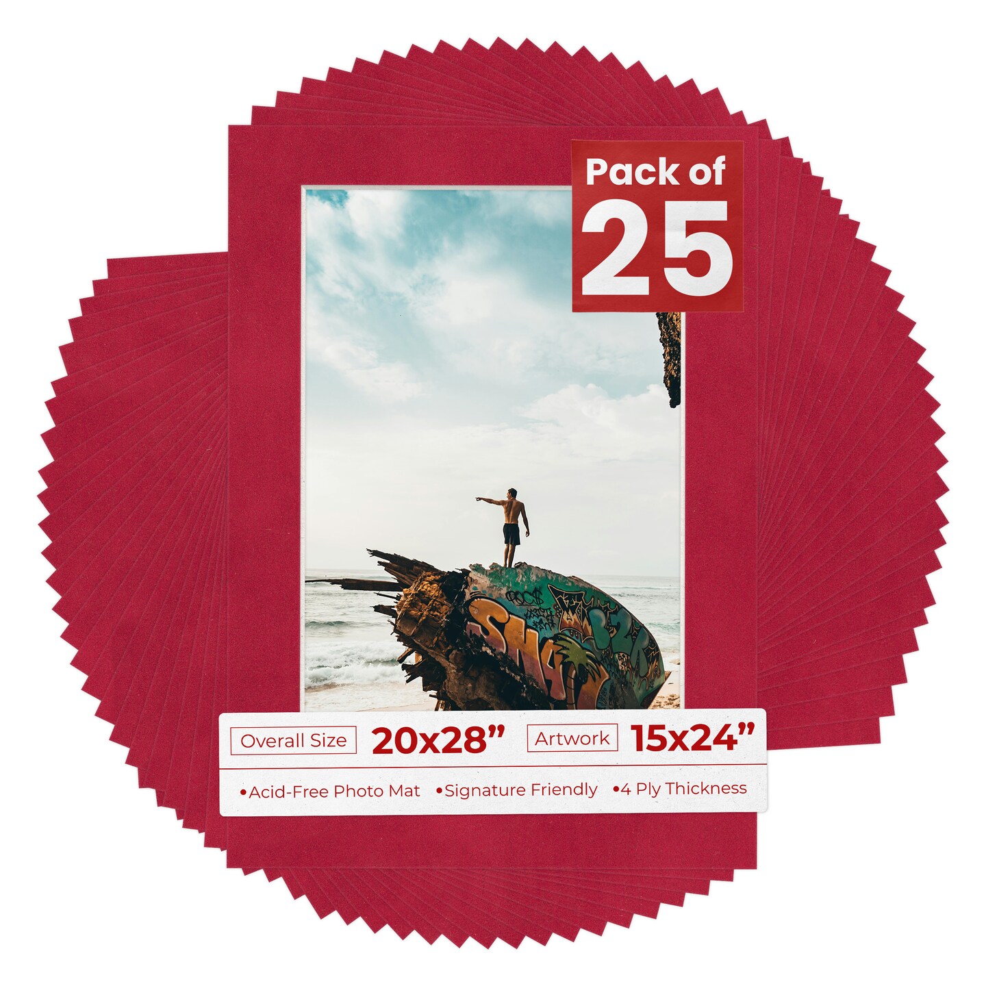 Red Suede Mat Board for 20x28 Frames - Fits 15x24 Photos