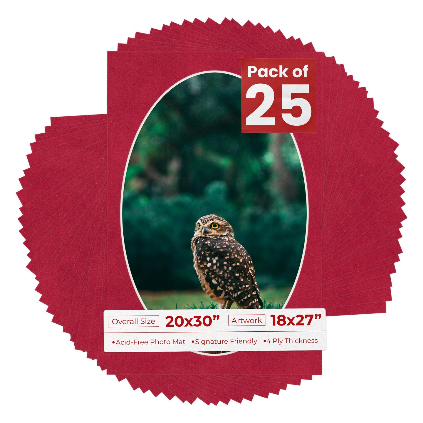 Red Suede Mat Board for 20x30 Frames - Oval Opening for 18x27 Photos