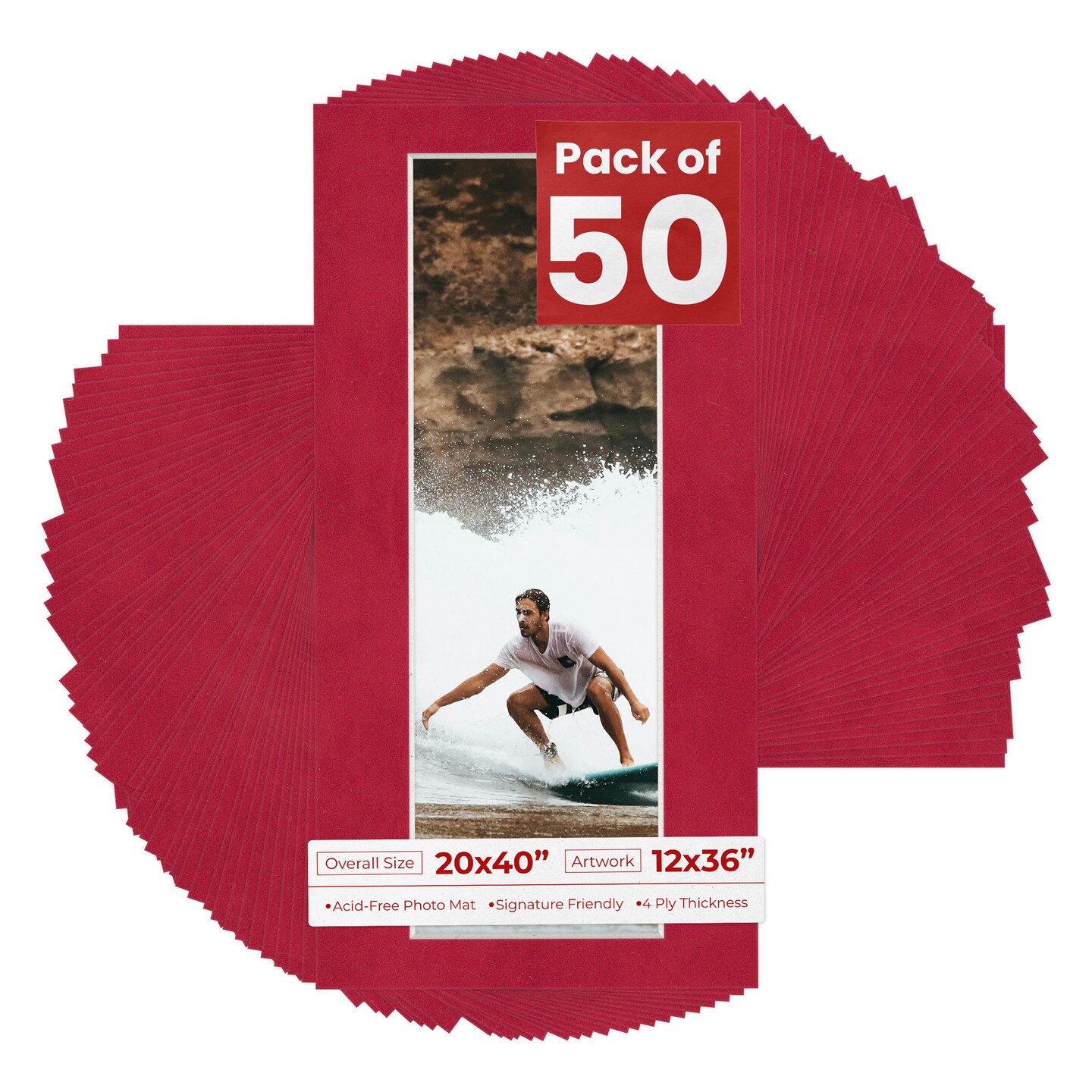 Red Suede Mat Board for 20x40 Frames - Fits 12x36 Photos