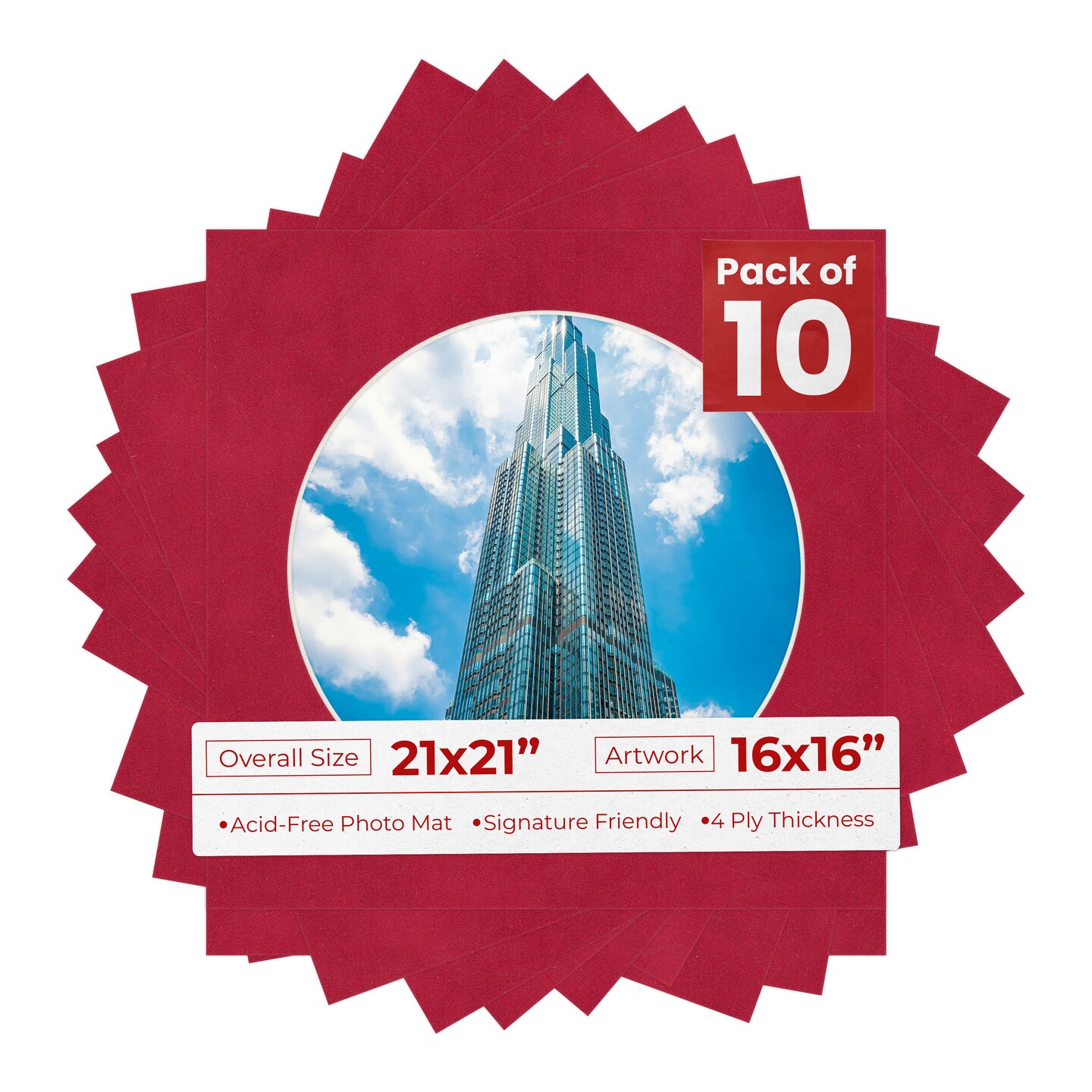 Red Suede Mat Board for 21x21 Frames - Circle Opening for 16x16 Photos