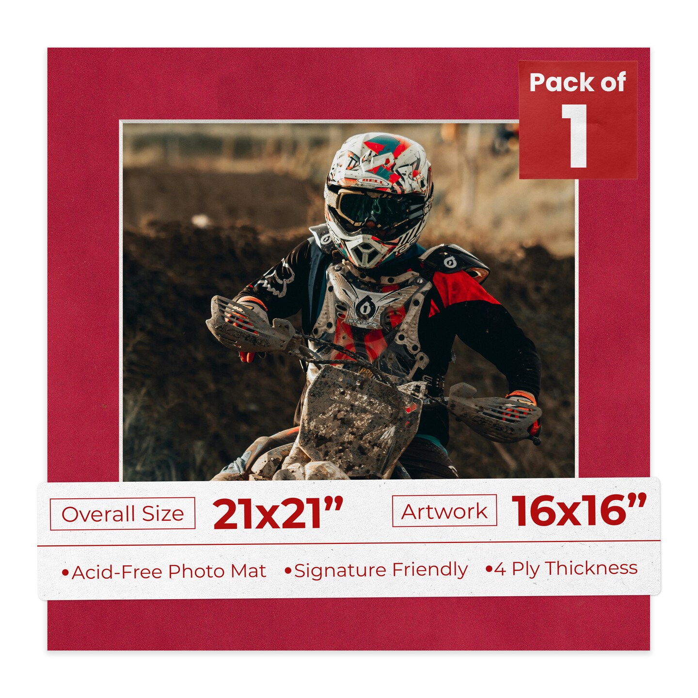 Red Suede Mat Board for 21x21 Frames - Fits 16x16 Photos