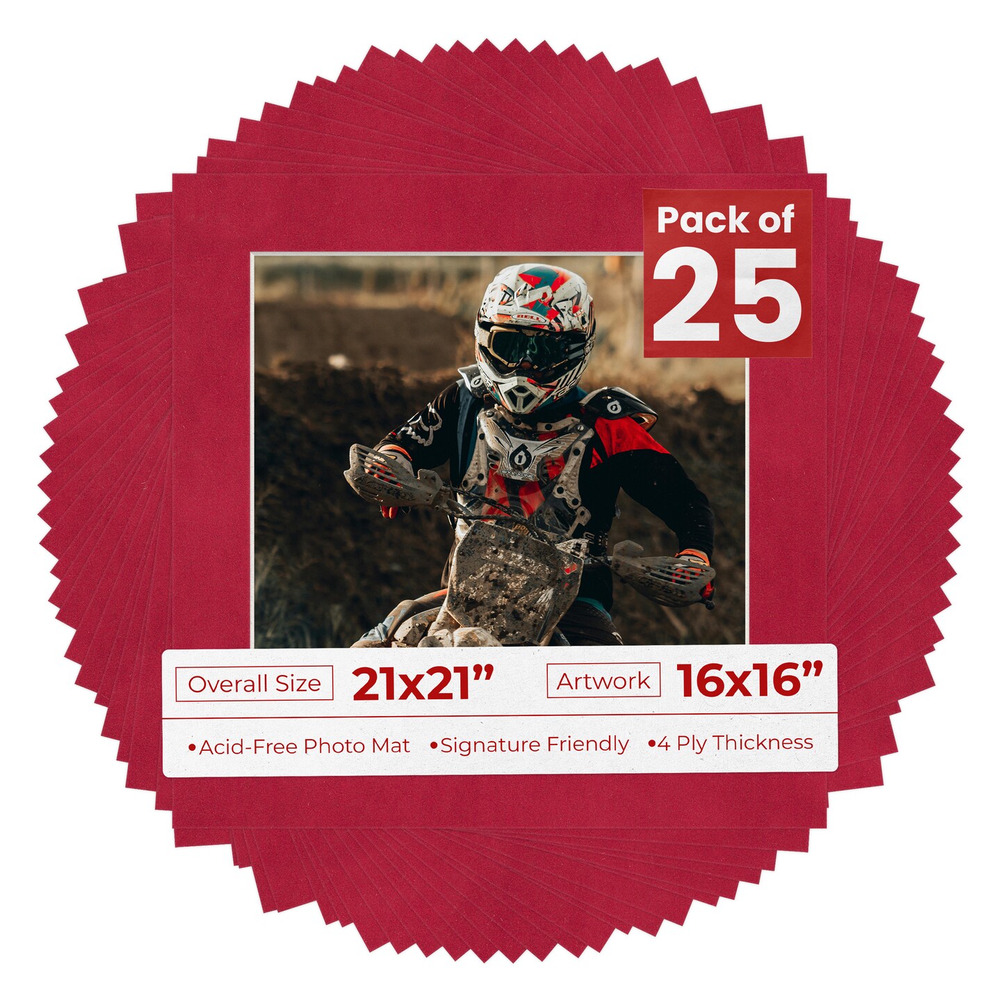 Red Suede Mat Board for 21x21 Frames - Fits 16x16 Photos
