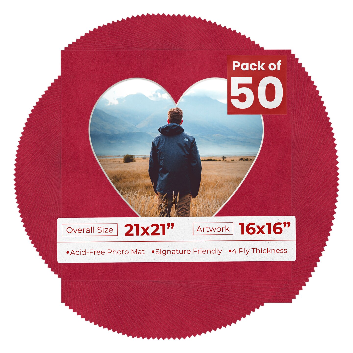 Red Suede Mat Board for 21x21 Frames - Heart Opening for 16x16 Photos