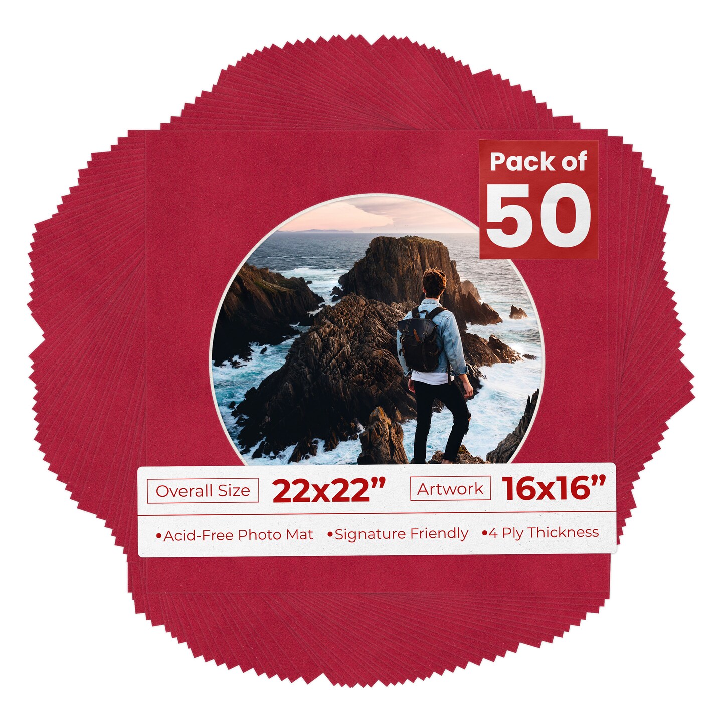 Red Suede Mat Board for 22x22 Frames - Circle Opening for 16x16 Photos