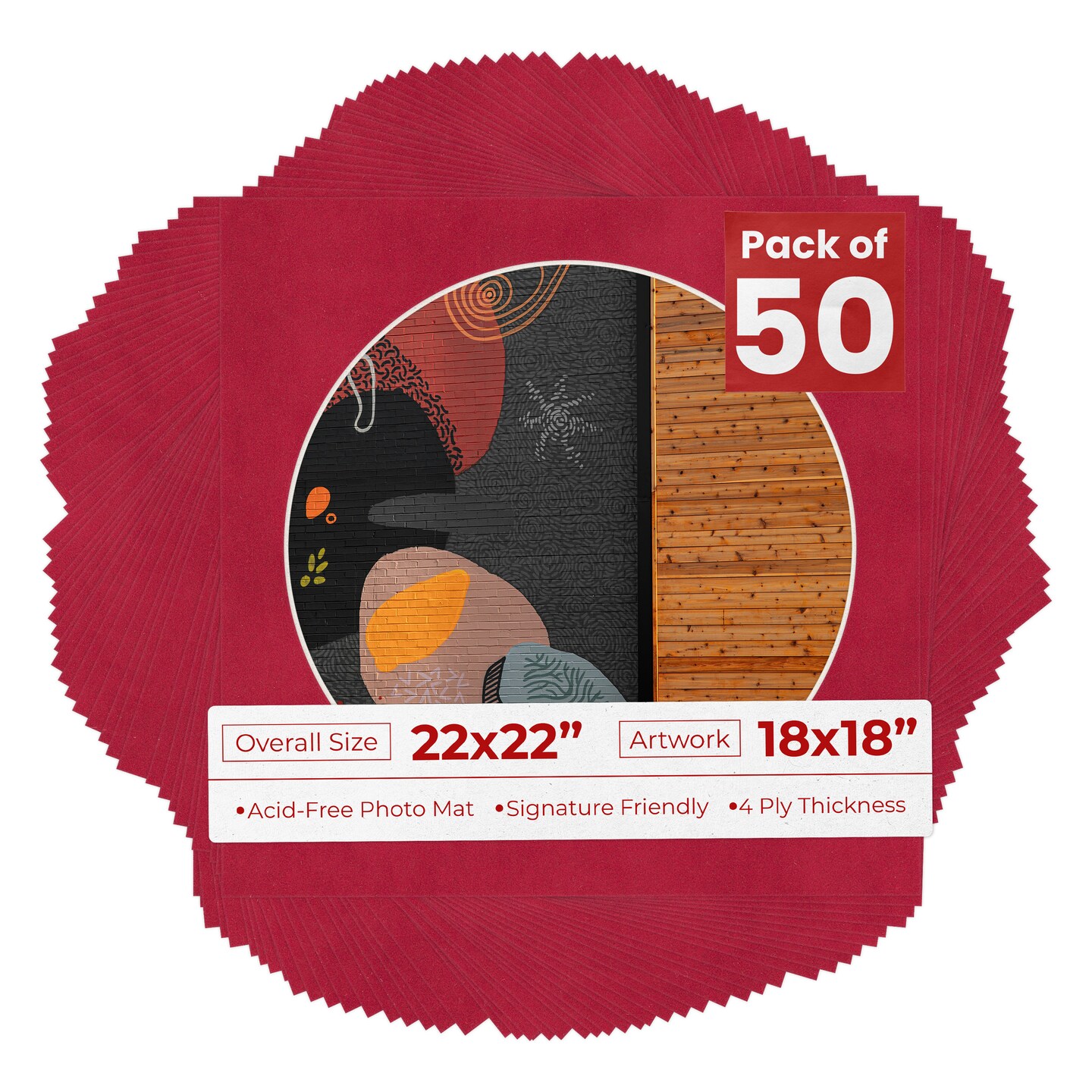Red Suede Mat Board for 22x22 Frames - Circle Opening for 18x18 Photos