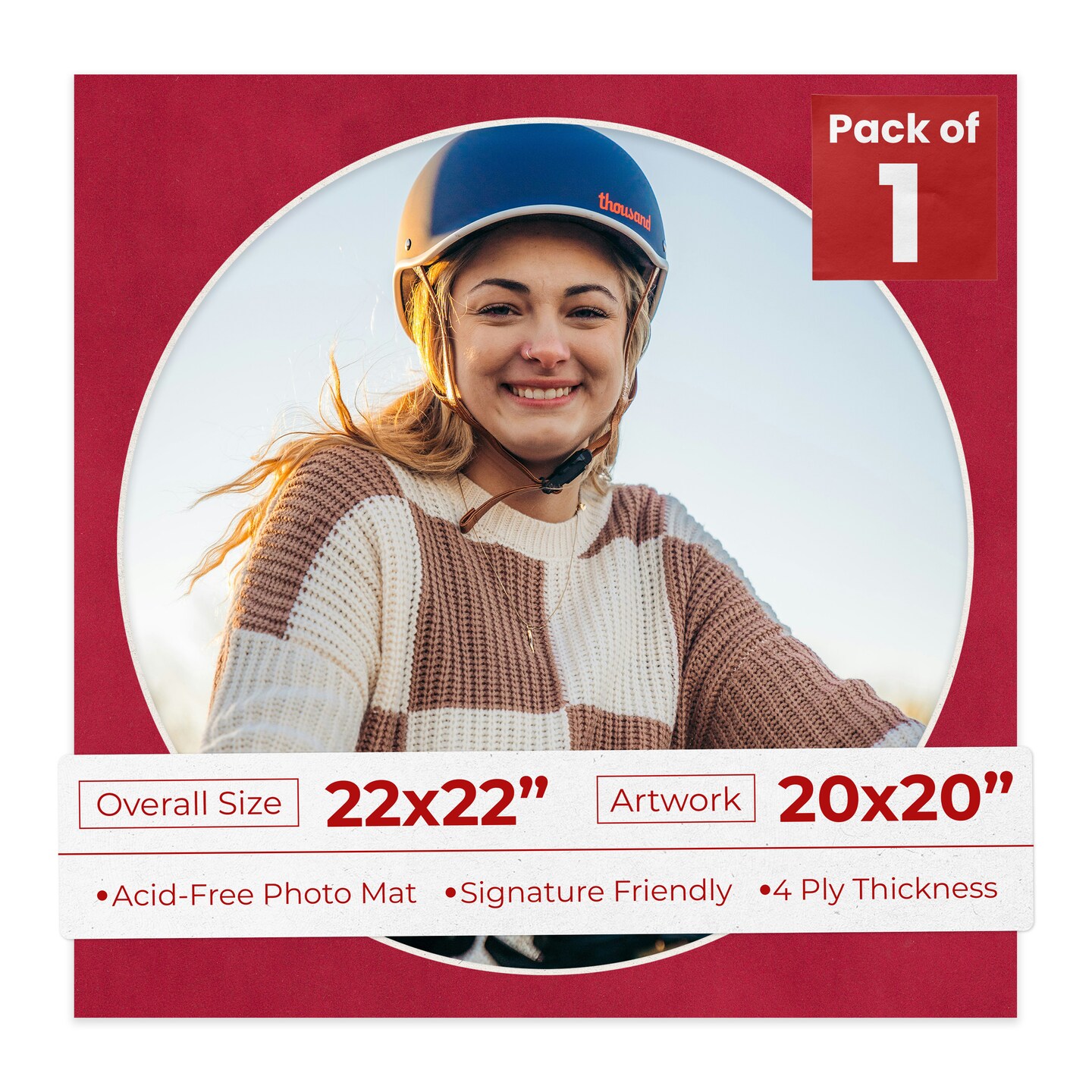 Red Suede Mat Board for 22x22 Frames - Circle Opening for 20x20 Photos