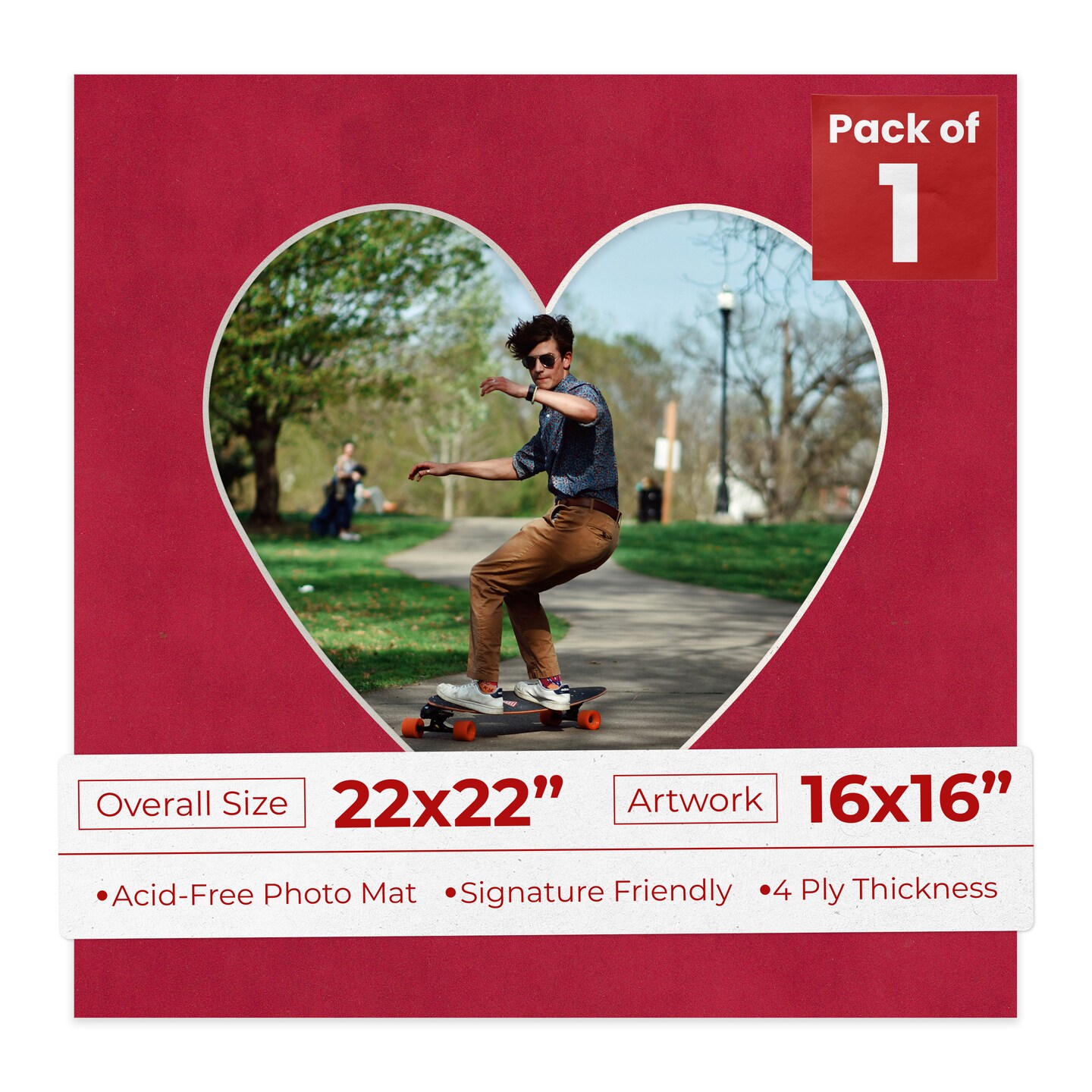 Red Suede Mat Board for 22x22 Frames - Heart Opening for 16x16 Photos