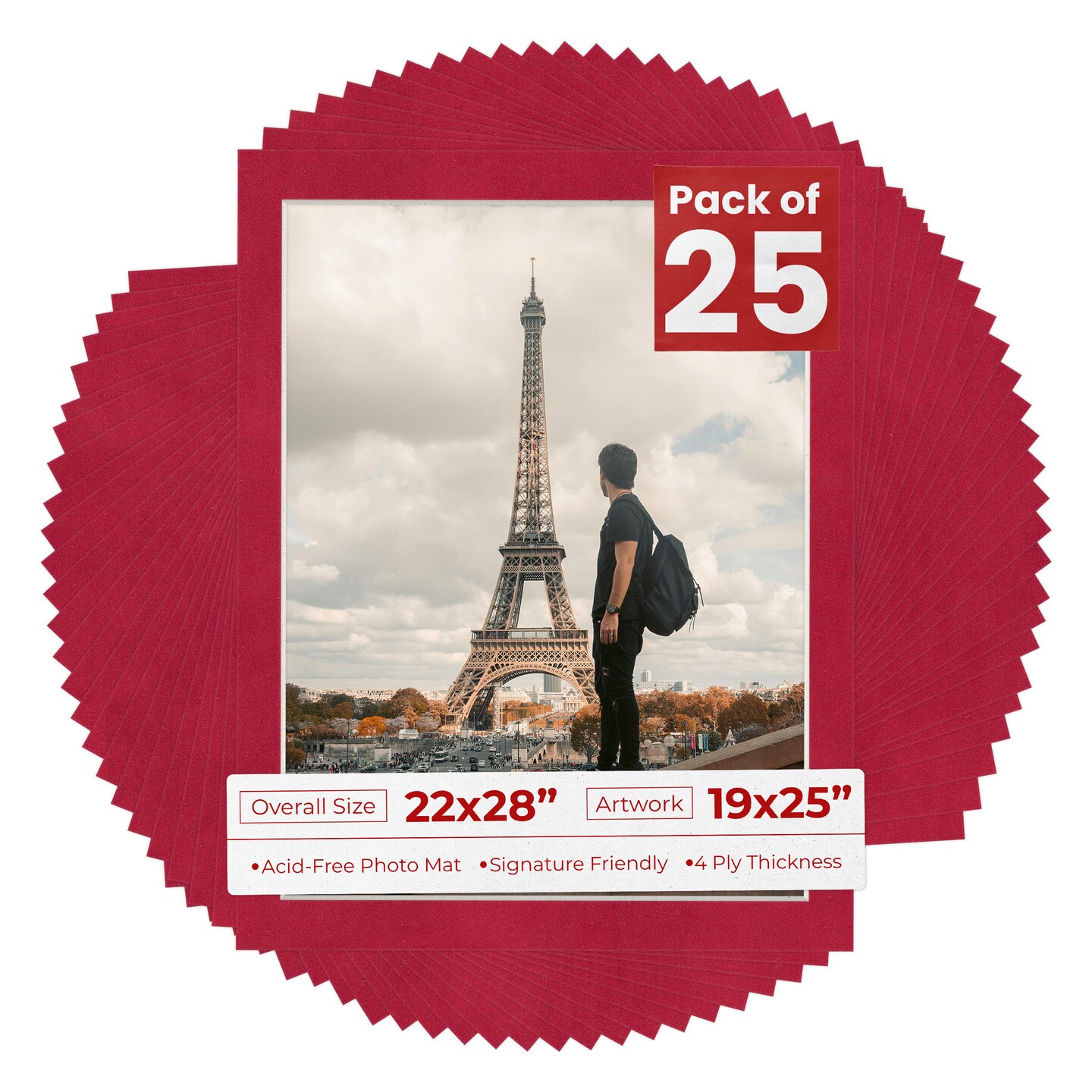 Red Suede Mat Board for 22x28 Frames - Fits 19x25 Photos