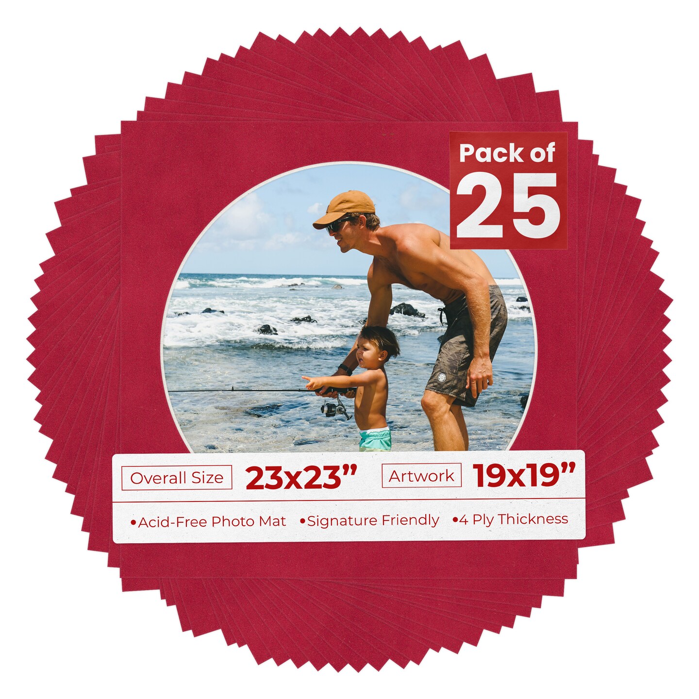 Red Suede Mat Board for 23x23 Frames - Circle Opening for 19x19 Photos