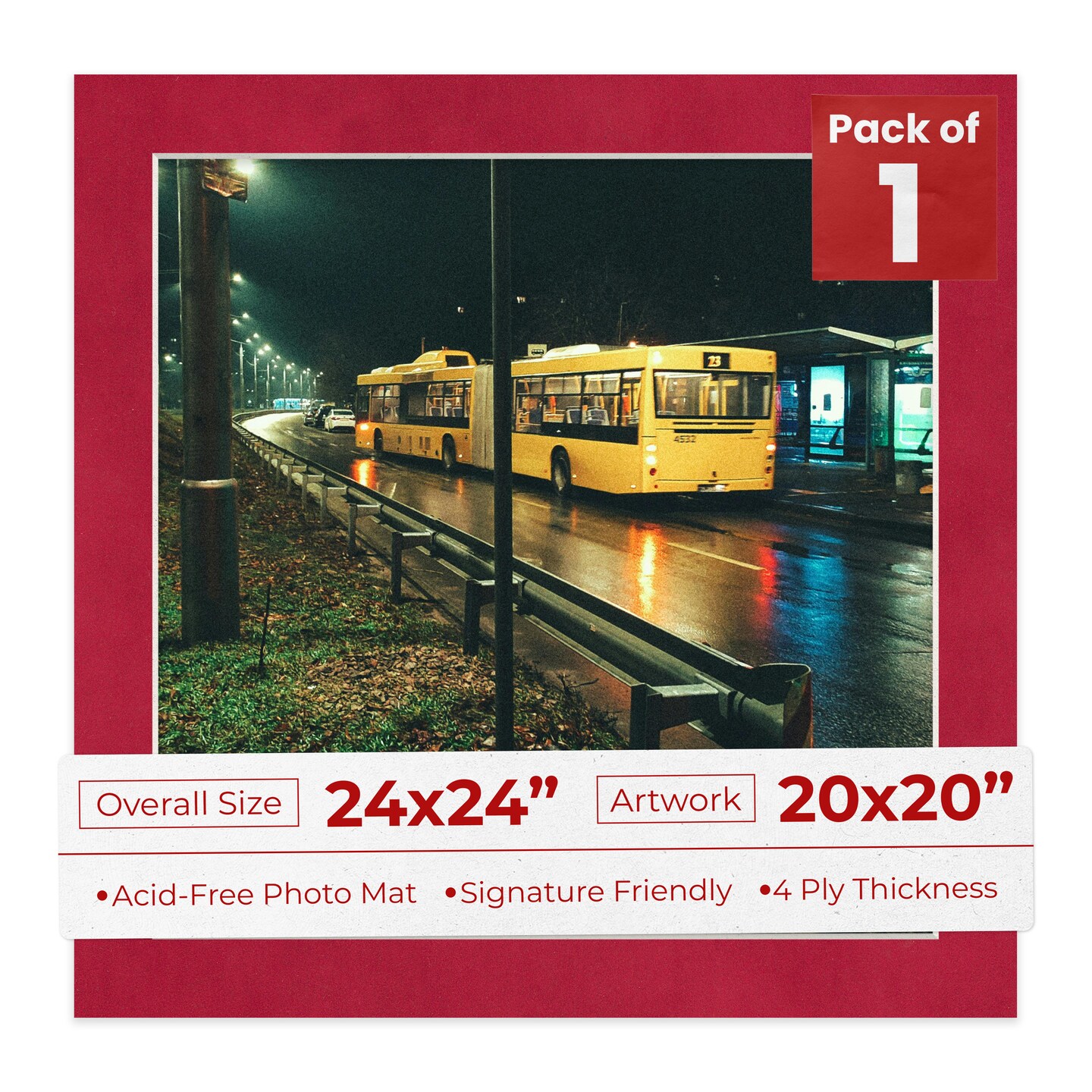 Red Suede Mat Board for 24x24 Frames - Fits 20x20 Photos