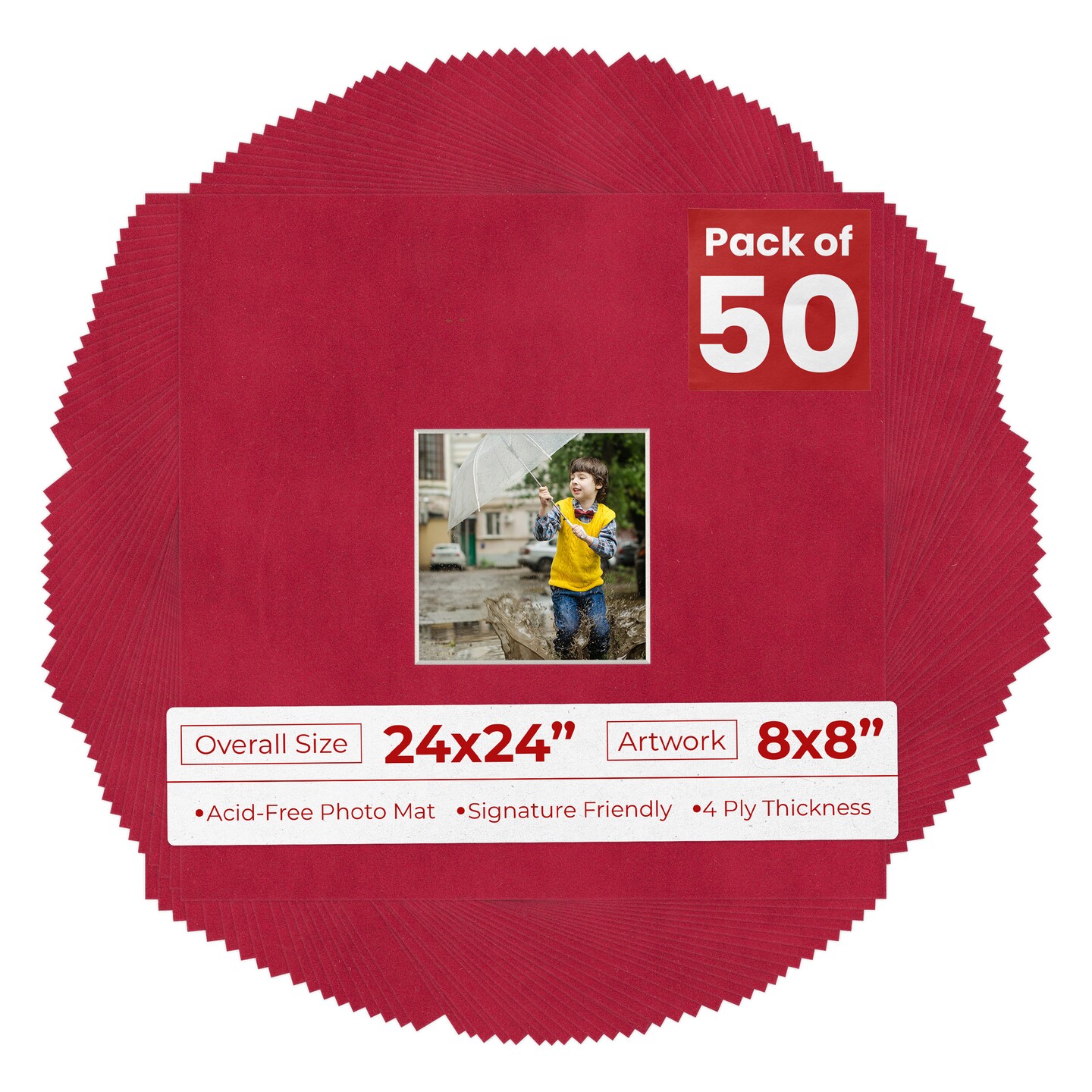 Red Suede Mat Board for 24x24 Frames - Fits 8x8 Photos