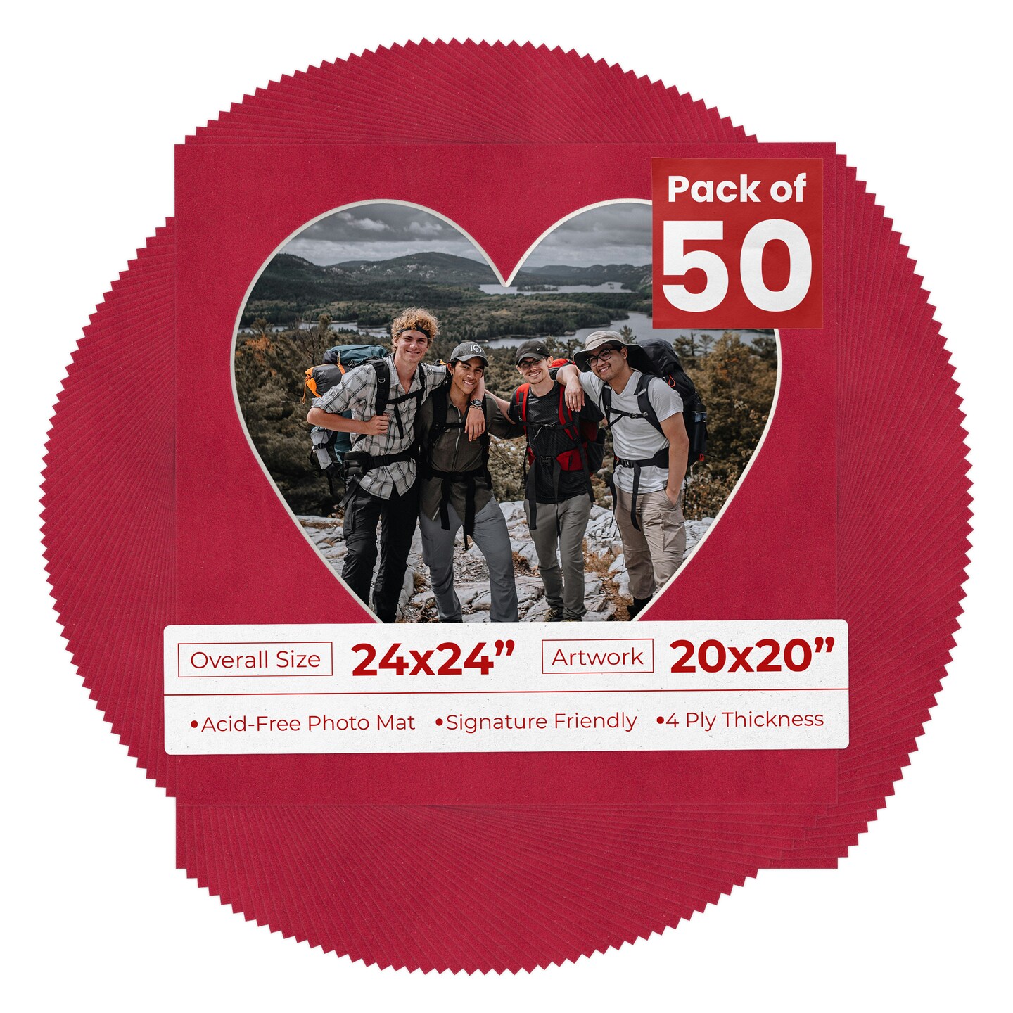 Red Suede Mat Board for 24x24 Frames - Heart Opening for 20x20 Photos
