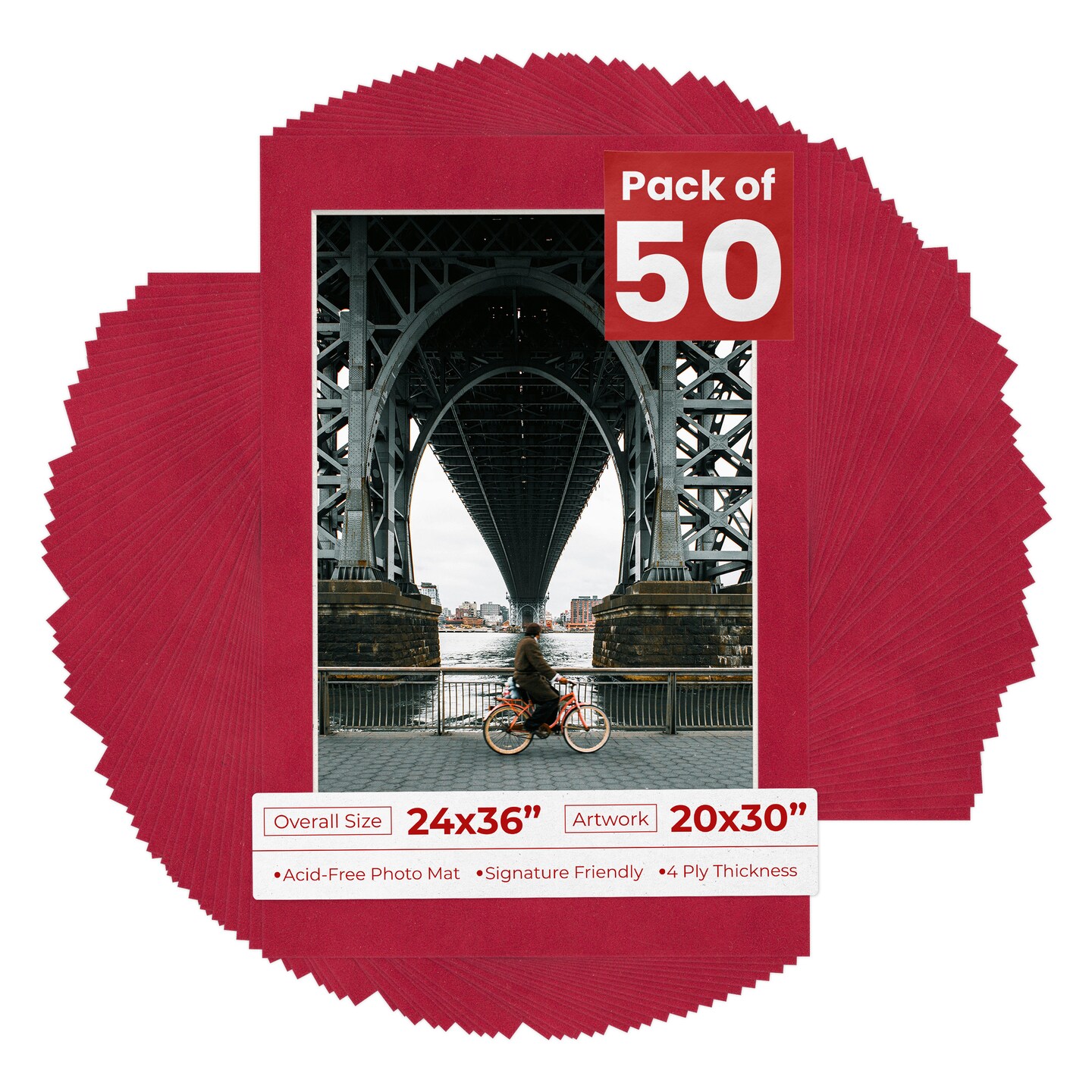 Red Suede Mat Board for 24x36 Frames - Fits 20x30 Photos