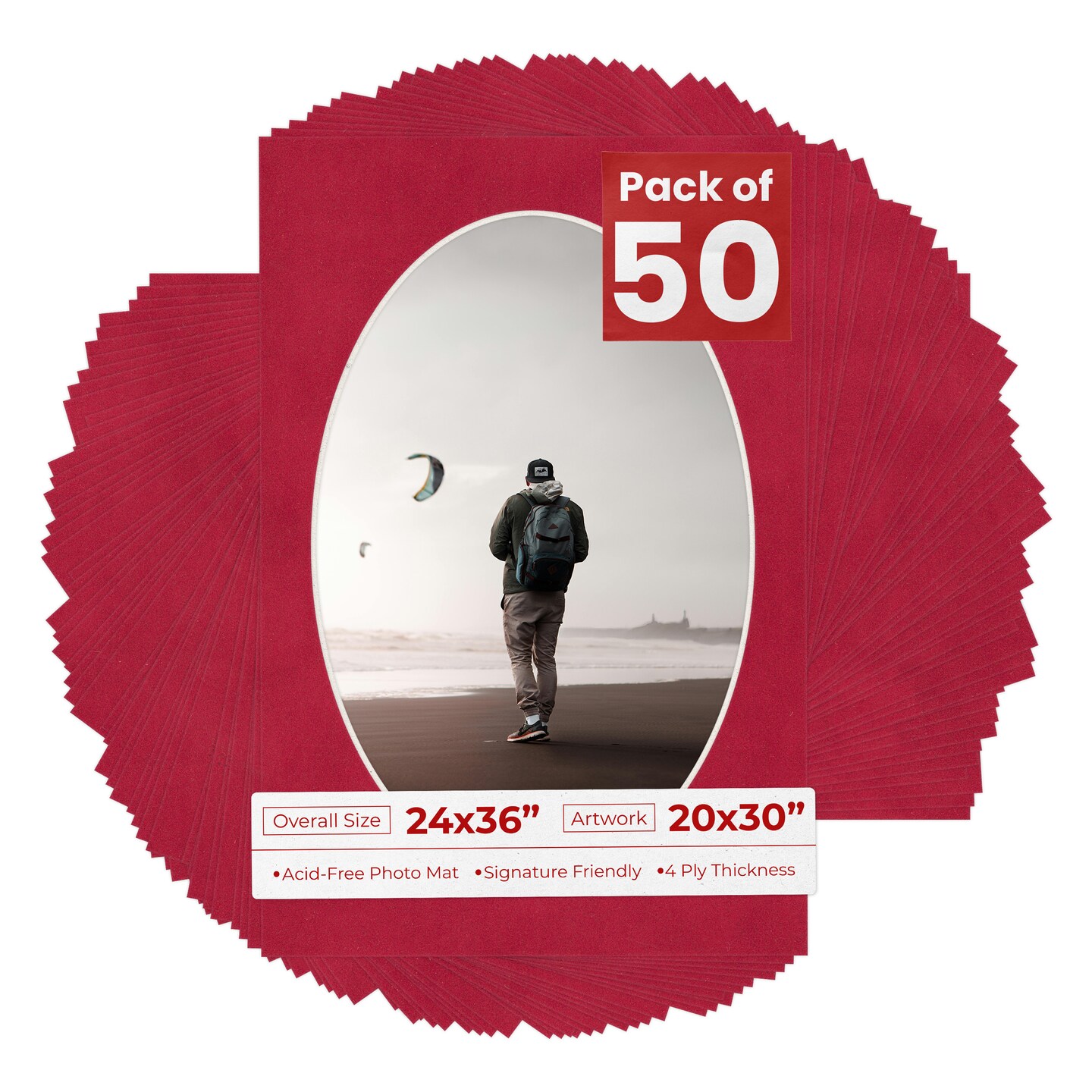 Red Suede Mat Board for 24x36 Frames - Oval Opening for 20x30 Photos