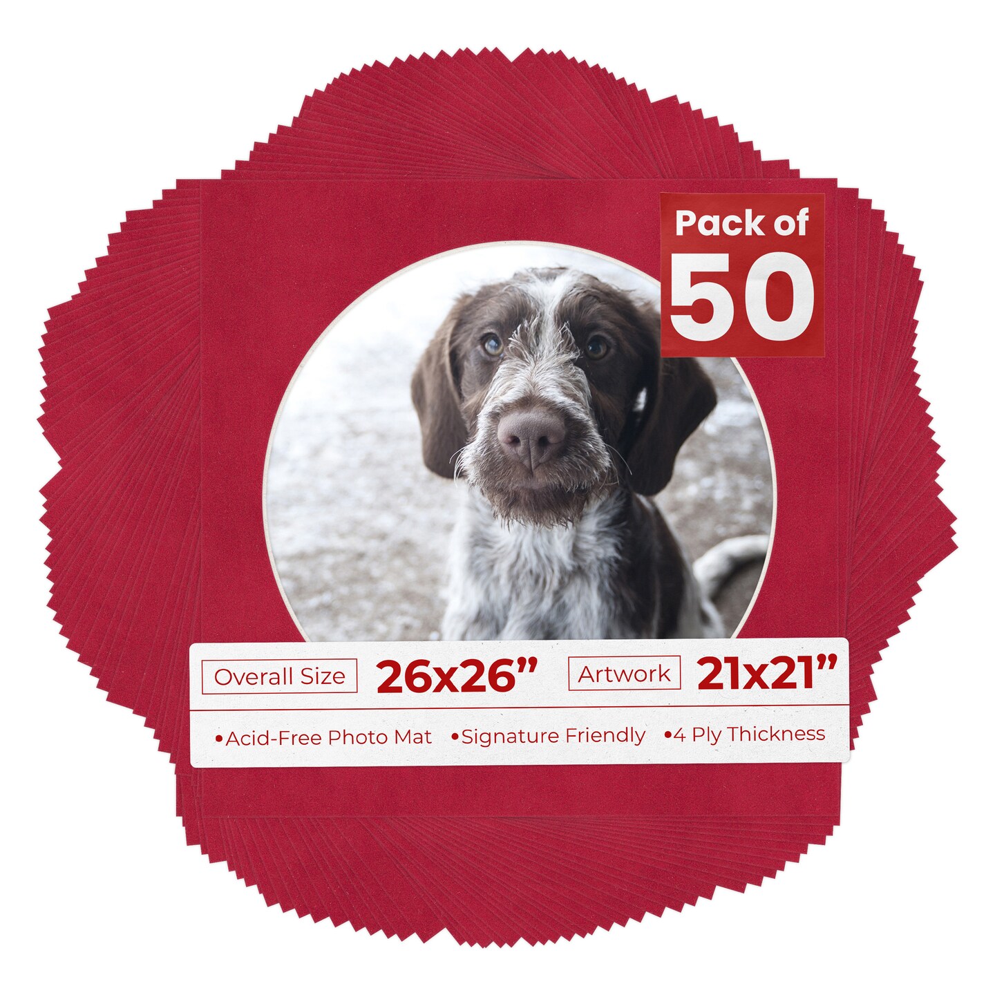 Red Suede Mat Board for 26x26 Frames - Circle Opening for 21x21 Photos