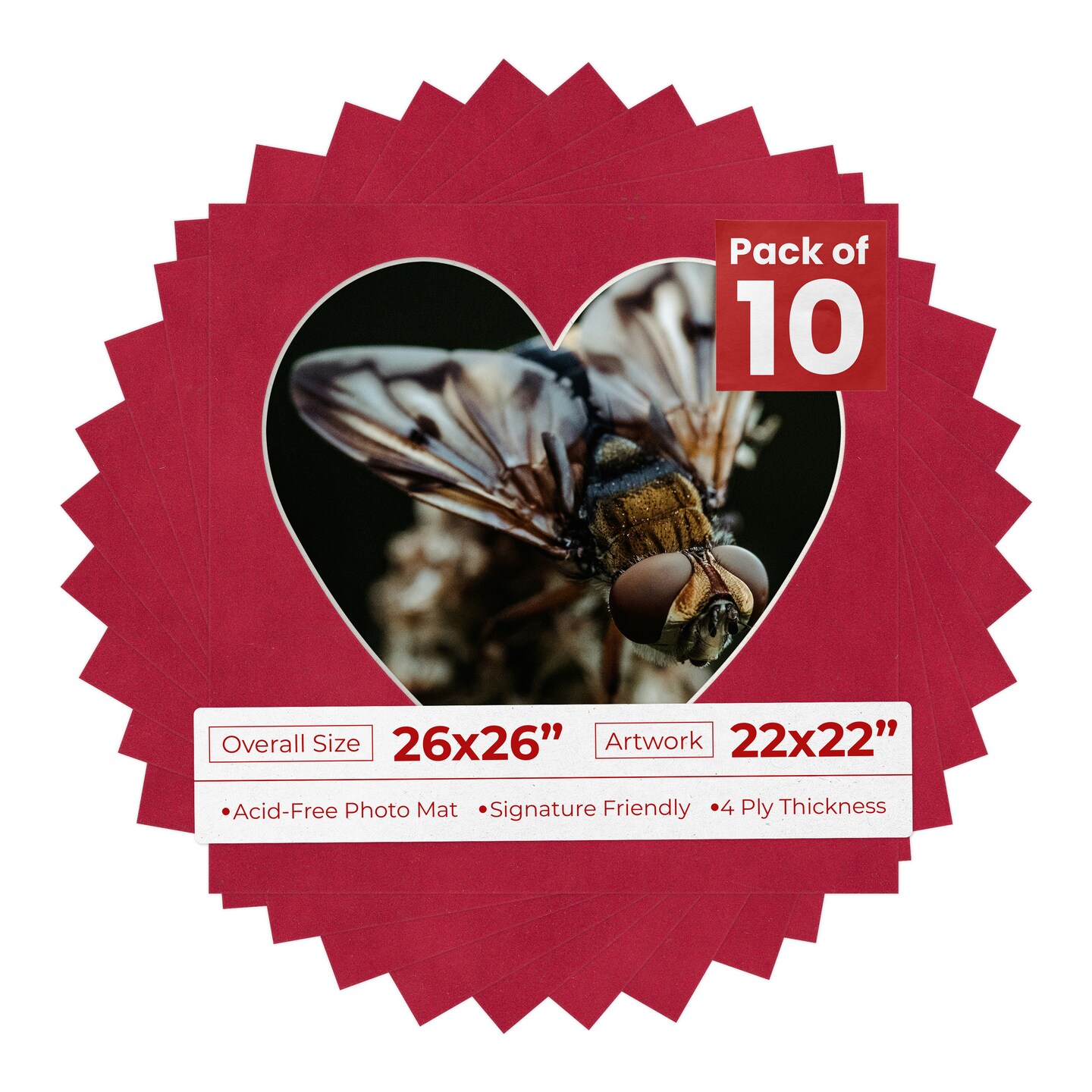 Red Suede Mat Board for 26x26 Frames - Heart Opening for 22x22 Photos