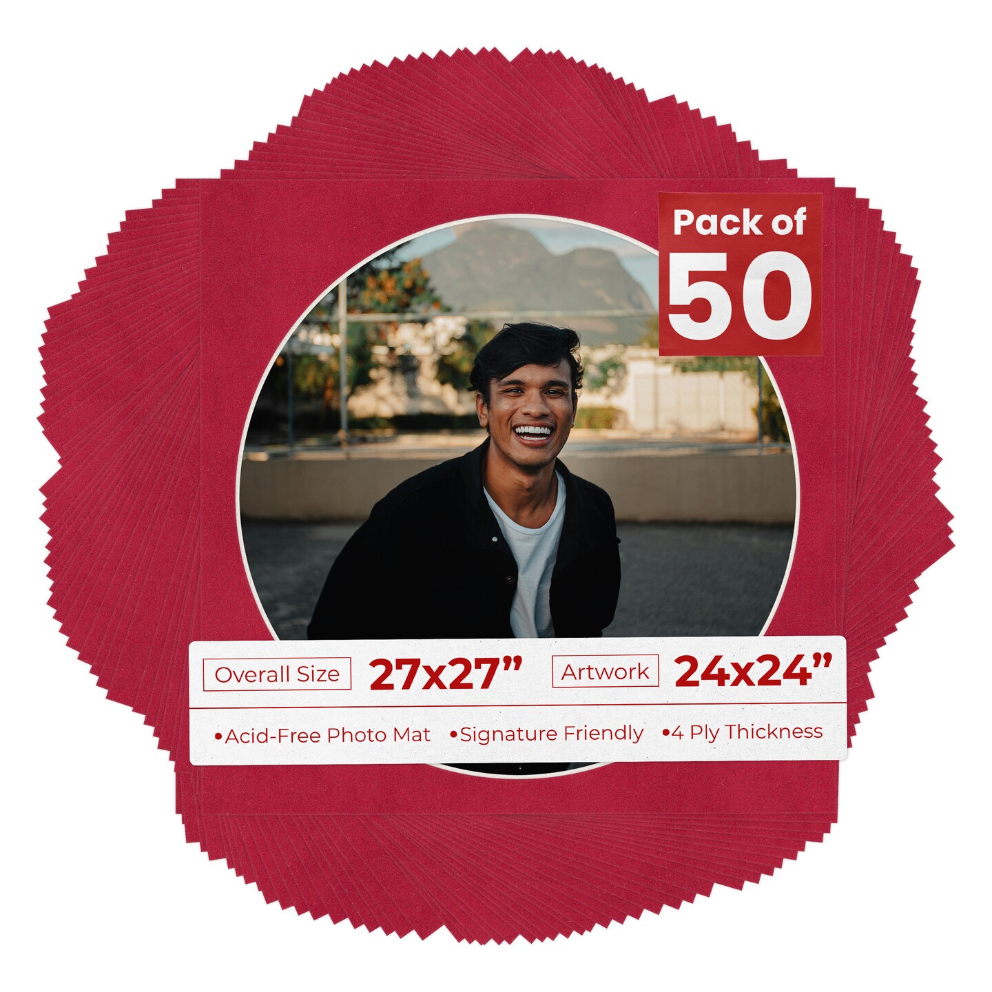 Red Suede Mat Board for 27x27 Frames - Circle Opening for 24x24 Photos