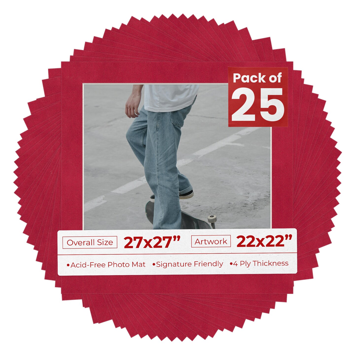 Red Suede Mat Board for 27x27 Frames - Fits 22x22 Photos