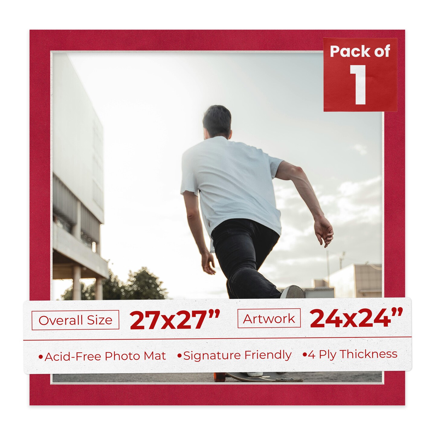Red Suede Mat Board for 27x27 Frames - Fits 24x24 Photos