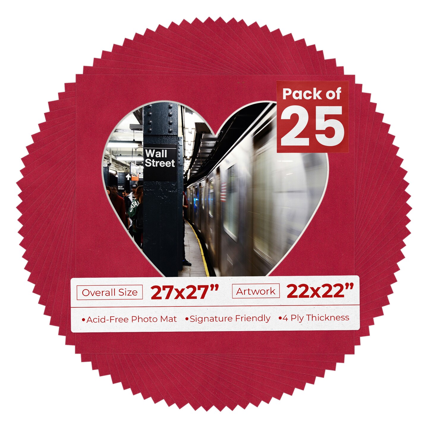 Red Suede Mat Board for 27x27 Frames - Heart Opening for 22x22 Photos